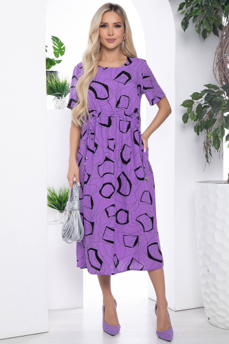 Свободное летнее платье длинной миди в фиолетовом оттенке подойдет для летних прогулок и для отпуска. Изделие с кулиской под грудью, завязывается на банты. Рукав укороченный, втачной. Спереди есть два потайных кармана.