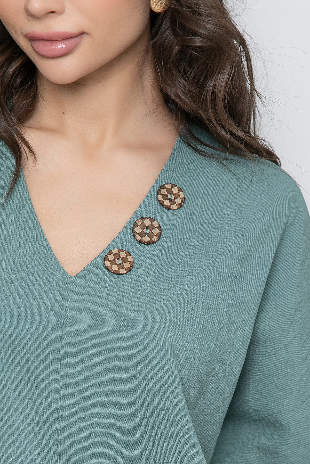 Элегантное платье прямого кроя позволит ощутить себя великолепно на любом мероприятии! Это отличный вариант на работу, прогулку или даже свидание. Изюминку образу придает декор в виде пуговиц. Рукав цельнокроеный. По переду изделия есть карманы.