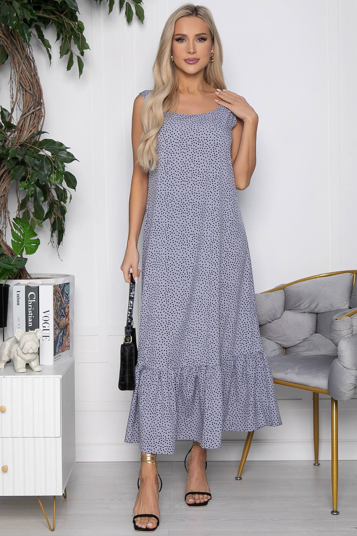 Воздушный сарафан свободного силуэта. Без рукавов, вырез круглый регулируется по спинке завязочками. В комплекте пояс из основной ткани.