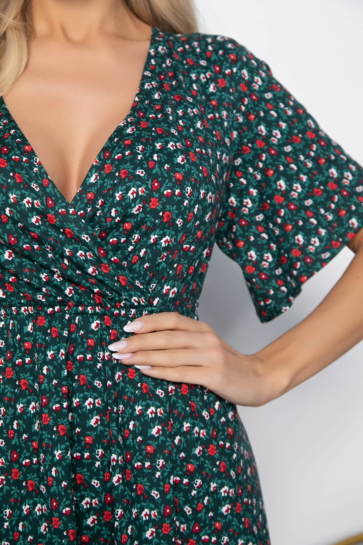 Платье с ярким цветочным принтом отличный вариант и комфортный предмет гардероба на каждый день для пляжа, дома и отдыха! Платье отрезное под грудью, лиф на запахе, рукав "крылышко", юбка полусолнце.