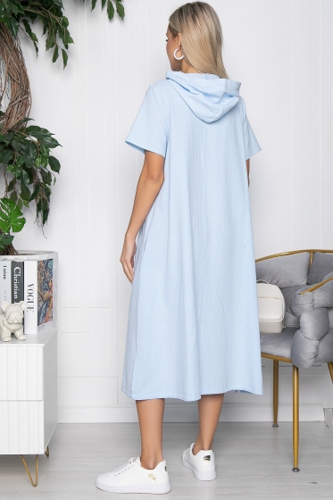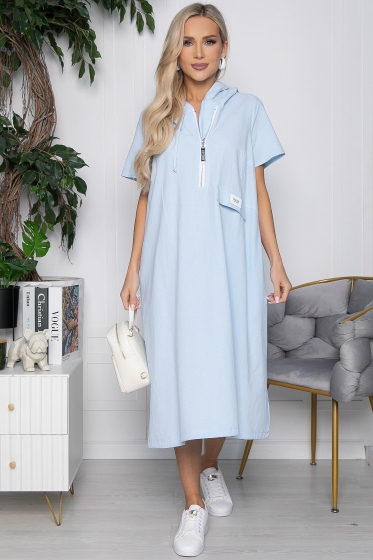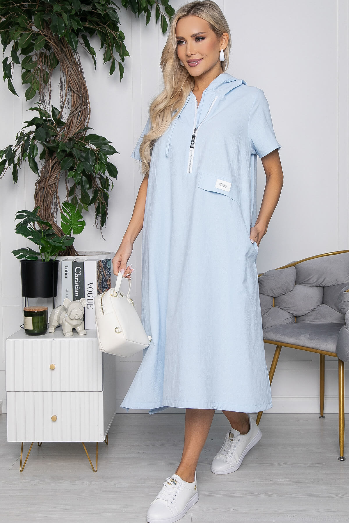 Свободный крой платья не сковывает движений, что особенно важно для тех кто ведет активный образ жизни. Его универсальность позволяет надевать его как на работу, так и для прогулки в парке. По низу платье регулируется кулиской. Карманы расположены сбоку.