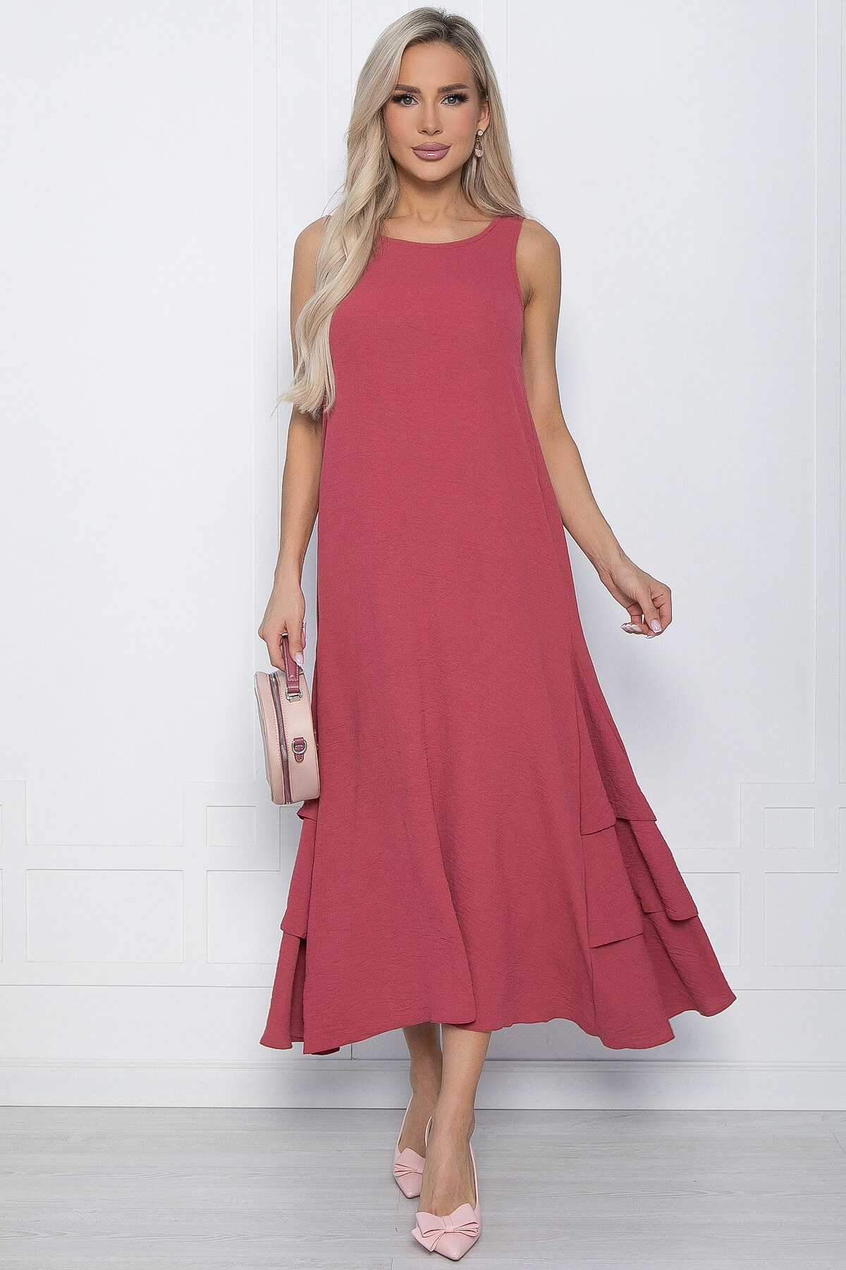Платье со вставками в виде нескольких ярусов — необычная модель в романтическом стиле, которая позволит выглядеть женственно и привлекательно каждый день. Фасон А-силуэта без рукавов плавно расклешается к низу, не подчеркивает нюансы фигуры, позволяет чувствовать себя комфортно и уверенно. Главный акцент платья — боковые вставки в виде клиньев, которые добавляют образу легкости и создают эффект летящей походки. Носить модель можно как в качестве самостоятельного элемента гардероба, так и поверх базовых однотонных футболок, топов.