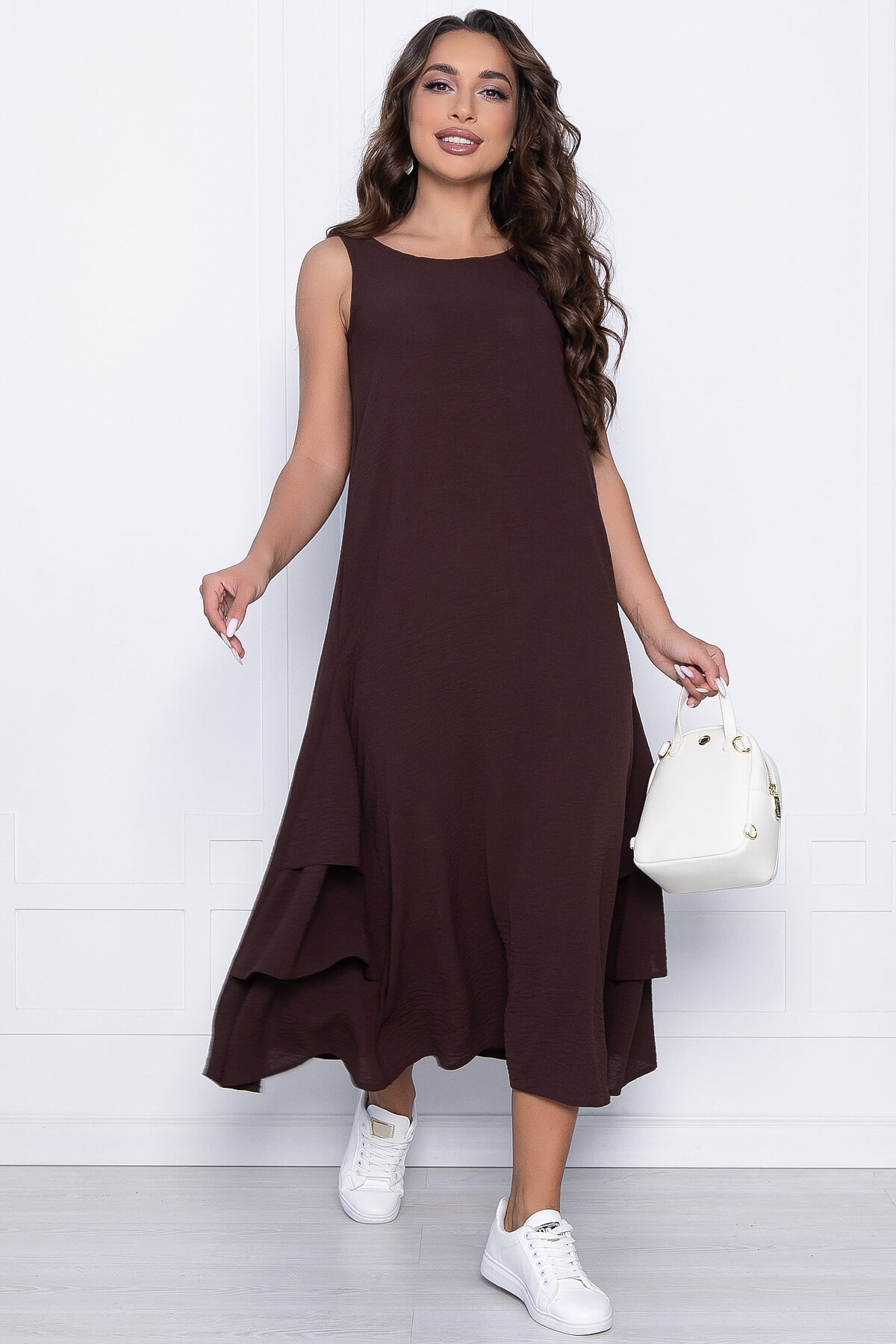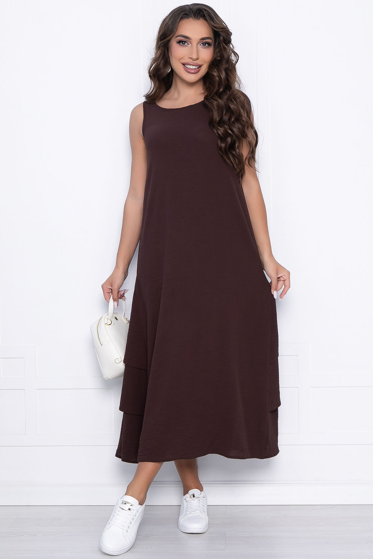 Платье со вставками в виде нескольких ярусов — необычная модель в романтическом стиле, которая позволит выглядеть женственно и привлекательно каждый день. Фасон А-силуэта без рукавов плавно расклешается к низу, не подчеркивает нюансы фигуры, позволяет чувствовать себя комфортно и уверенно. Главный акцент платья — боковые вставки в виде клиньев, которые добавляют образу легкости и создают эффект летящей походки. Носить модель можно как в качестве самостоятельного элемента гардероба, так и поверх базовых однотонных футболок, топов.