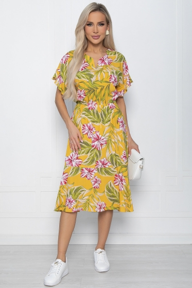 Шикарное платье с акцентными рукавами не оставит без внимания окружающих. Изделие украшает акцентный вырез по горловине. Рукав цельнокроенный с воланом по низу. Изделие отлично садится по фигуре благодаря вшитой резинке по линии талии. По низу изделия волан.
