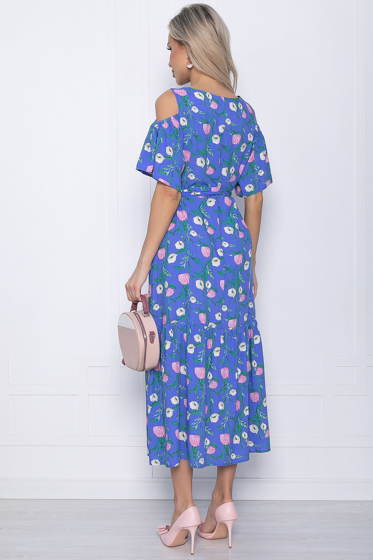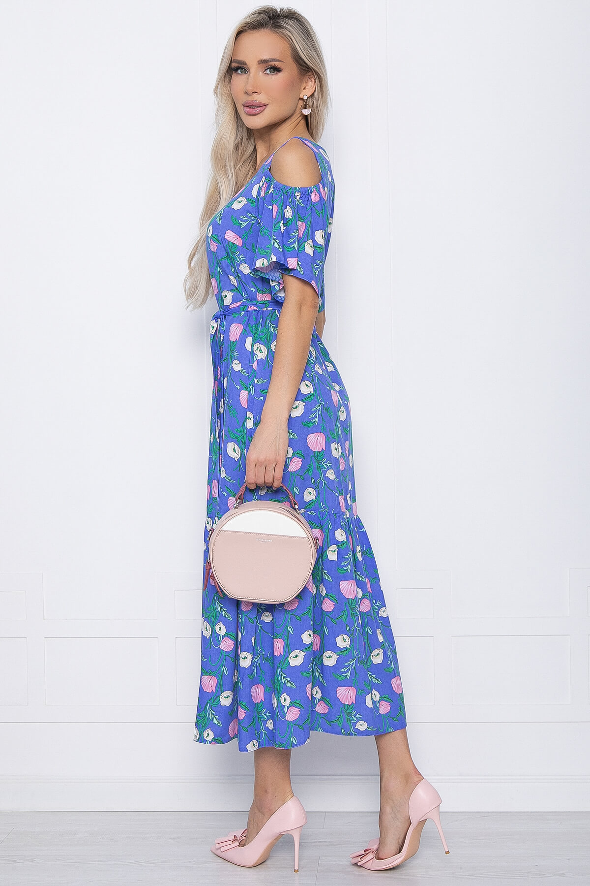Шикарное платье с акцентными рукавами не оставит без внимания окружающих. Вырезы на плечах придадут утонченность и добавят образу кокетства. Платье можно носить, как с поясом, подчеркивая всю красоту фигуры, так и без - тогда образ получится более расслабленный. Изделие по низу украшает волан. Пояс из основной ткани входит в комплект.