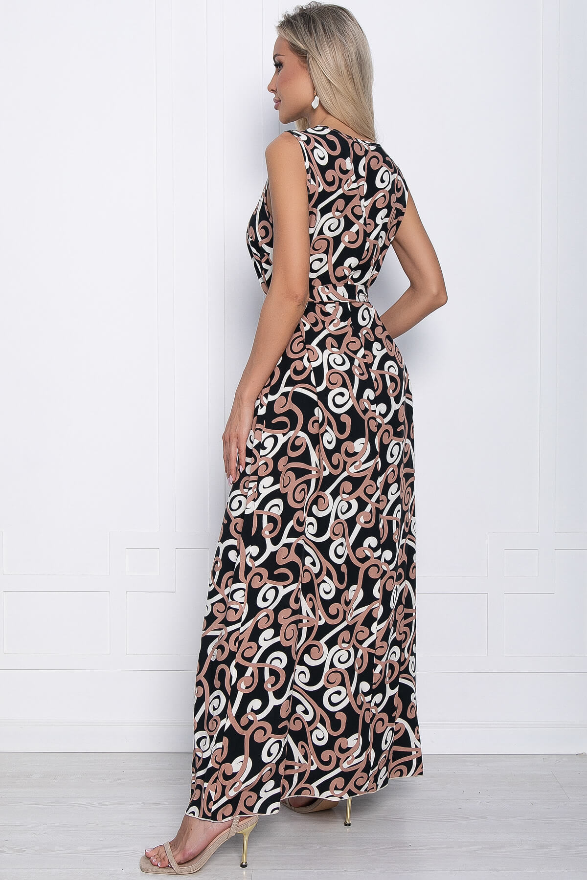Привлекательное платье с необычным принтом для солнечных летних дней! Можно сочетать с белыми кедами для создания стильного повседневного образа. Для более нарядного образа можно подобрать туфли, сумку и аксессуары. В комплект входит пояс из основной ткани, которым можно подчеркнуть талию.