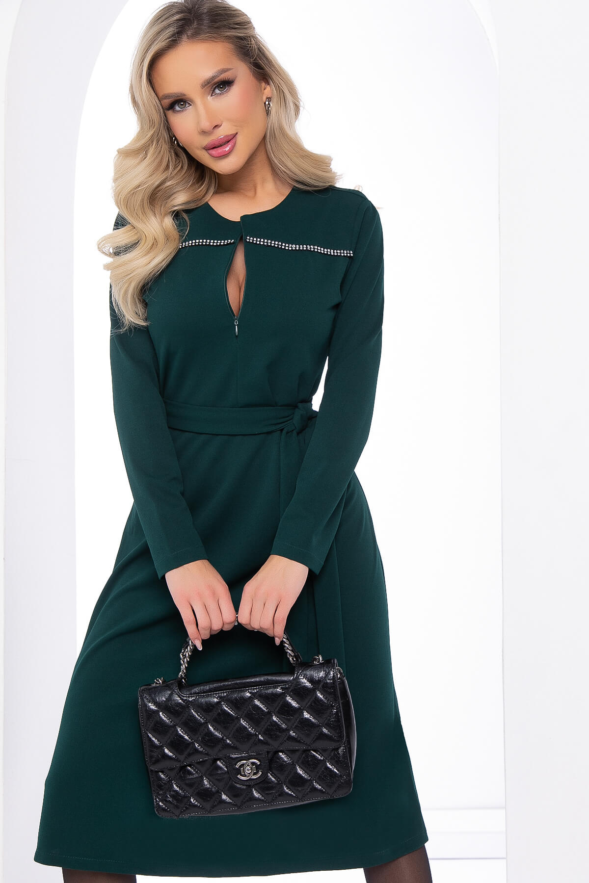 Очаровательно платье из трикотажа обязательно впишется в ваш повседневный гардероб. Модель имеет длинный втачной рукав. Изделие украшают декоративные элементы на груди, что позволяет создавать с этим платьем невероятно женственные и роскошные праздничные образы. Потайная молния на груди позволяет подчеркнуть зону декольте.