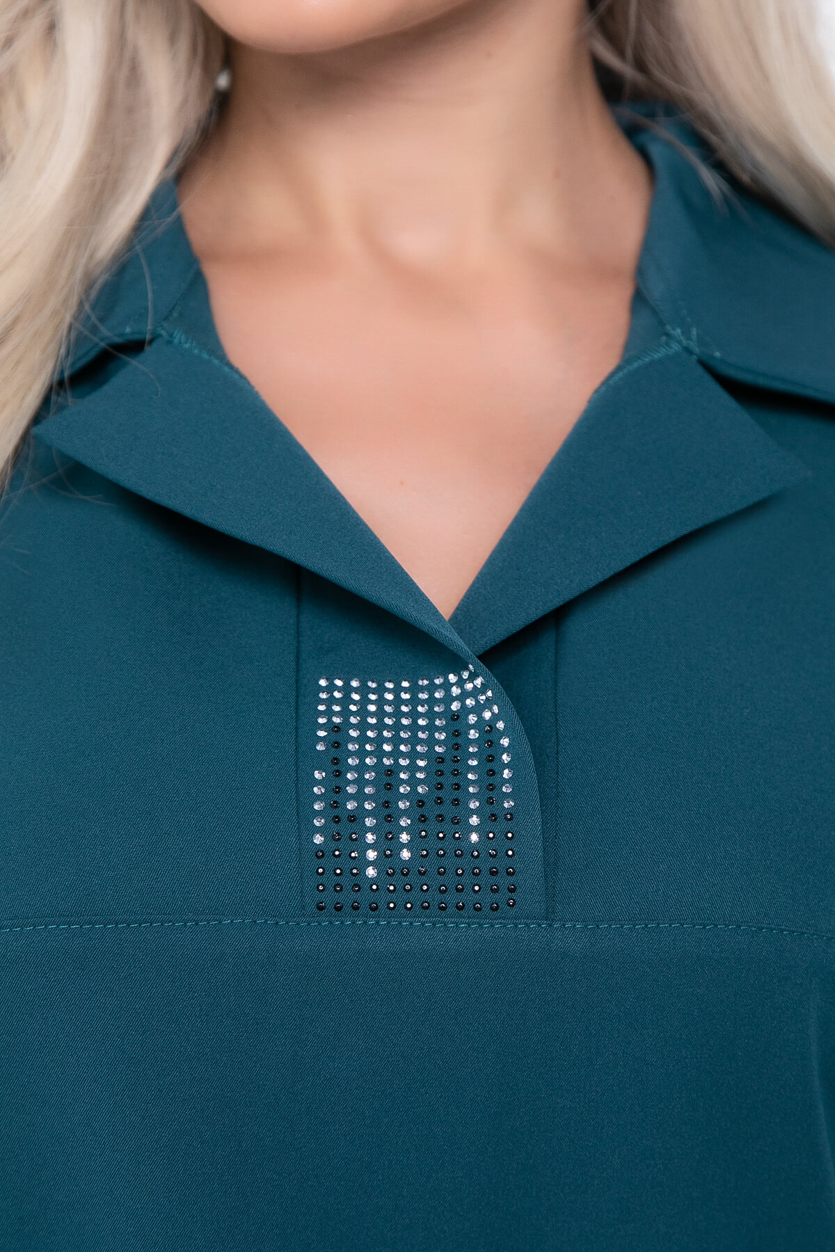 Декоративные элементы: стразы на вороте.