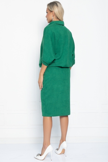 Элегантная юбка, прилегающего силуэта, подчеркнёт красоту женской фигуры и визуально вытянет силуэт, а свободный верх не будет сковывать движений. Платье прекрасно подойдёт в качестве повседневного варианта и будет хорошо сочетаться как с туфлями или ботильонами, так и с кроссовками или ботинками. Благодаря своему фасону платье прекрасно справляется с задачей скрыть небольшие недостатки фигуры и подчеркнуть достоинства. Пояс из основной ткани и украшение входят в комплект.