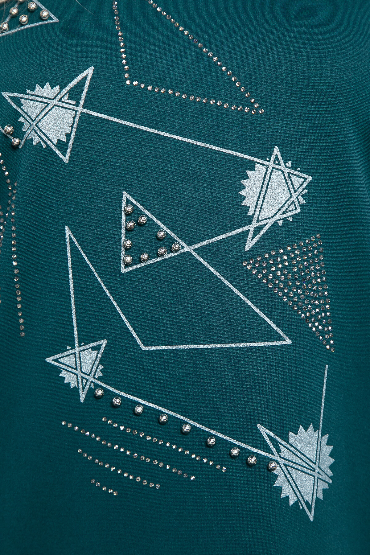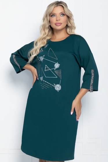 Платье-туника в стиле oversize подойдёт для создания стильного и комфортного повседневного образа. По передней части платья выполнена аппликация, благодаря которой эту модель можно использовать для создания вечернего образа. Платье свободного кроя, средней длины, линия плеча спущена. Такое платье можно надеть, как с ботинками на тракторной подошве, так и с лодочками на каблуке.