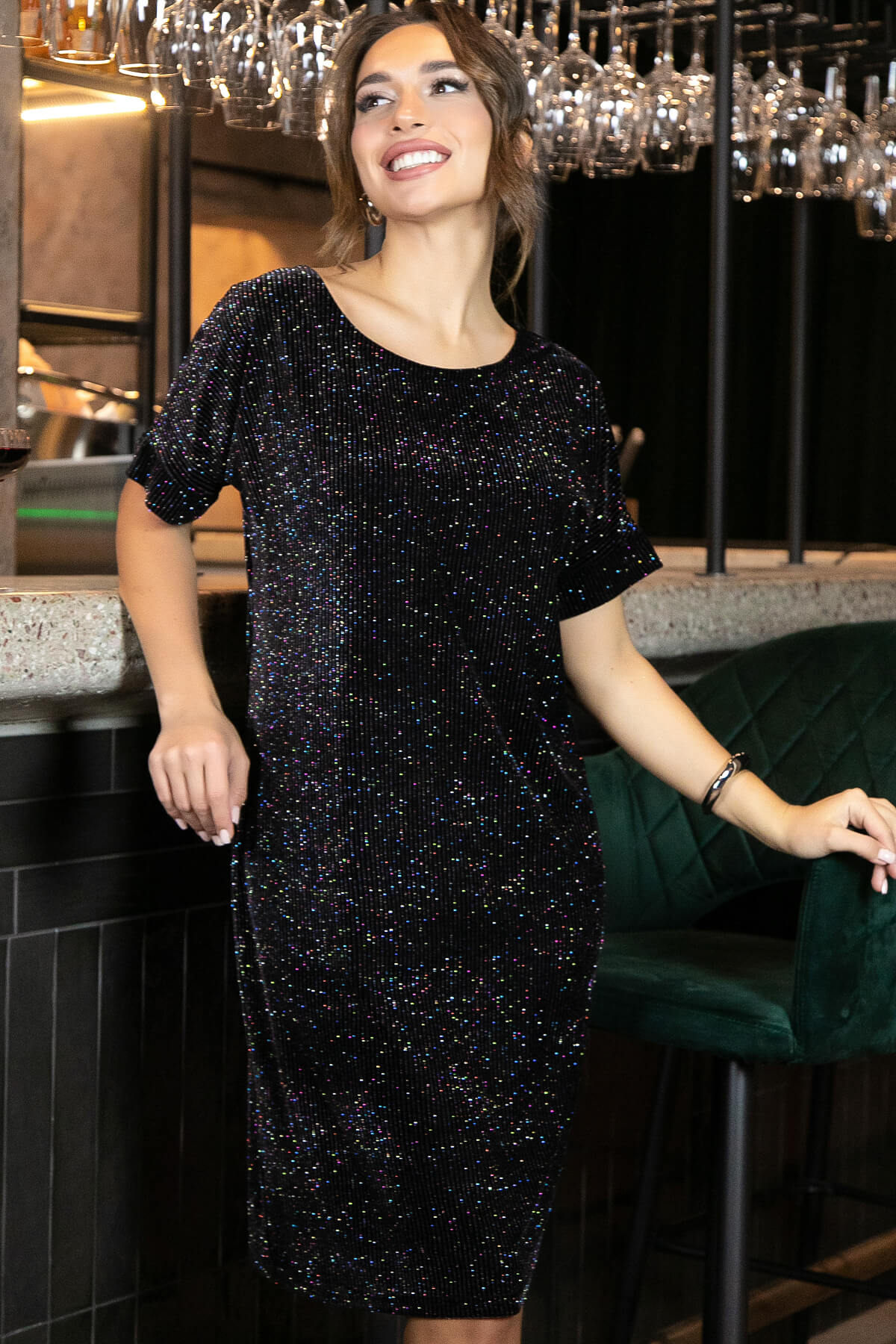 Платье Покоряя сердца (черный блеск) П11236