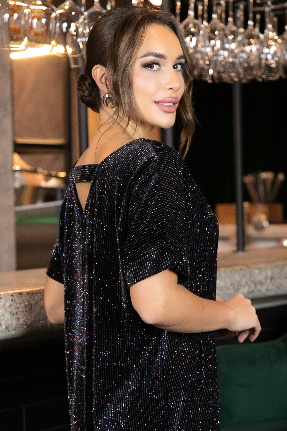Маленькое чёрное платье - незаменимый наряд в гардеробе каждой женщины. Платье из бархатной ткани с минималистичным дизайном - то, что нужно для любой вечеринки. По спинке выполнен декоративный вырез, акцентирующий внимание на вашем образе.