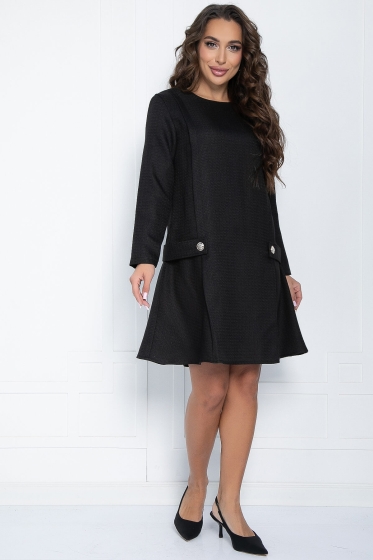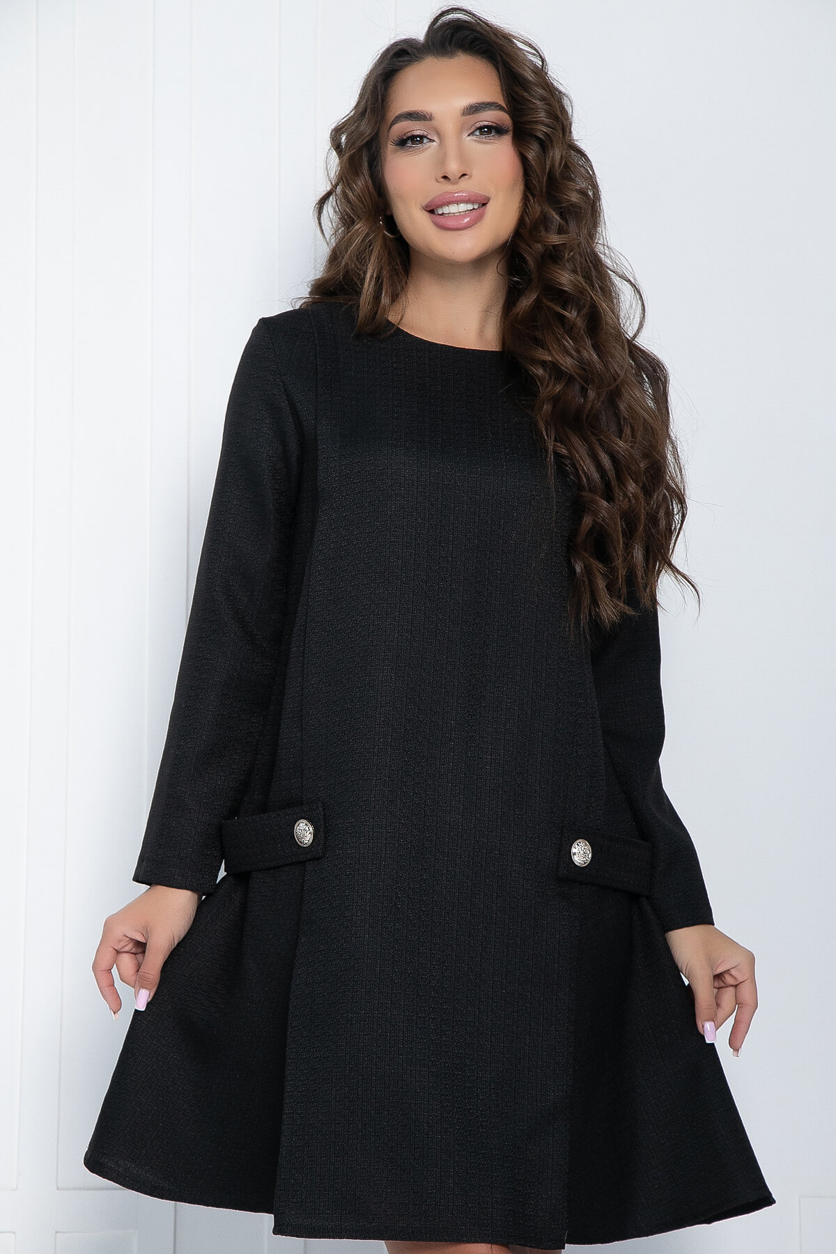Платье сочетает в себе стиль, комфорт и элегантность! Можно дополнить образ различными аксессуарами и обувью, чтобы создать необходимый образ. Оно имеет современный крой и округлую горловину. Боковые части украшены декоративными хлястиками с пуговицами.