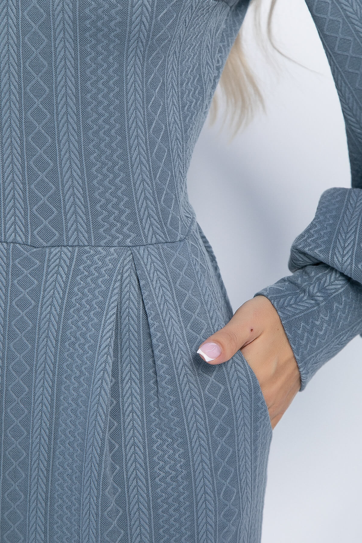 Элегантное платье из фактурной ткани создано для того, чтобы Вы были в центре внимания! Идеально подчеркивает преимущества фигуры. Выполнено с V-образной горловиной, рукава втачные, длинные, по низу широкий манжет. Пояс из основной ткани входит в комплект.