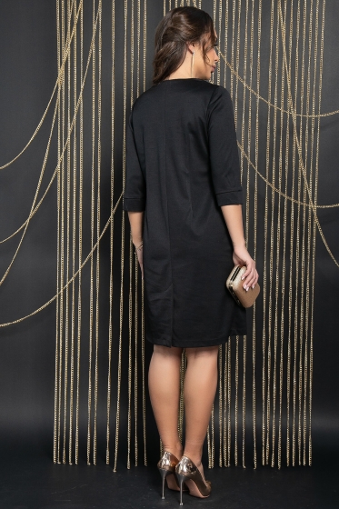 Чёрное платье приталенного силуэта — станет незаменимым элементом вашего гардероба, идеально подходящим как для важных встреч, так и для вечерних мероприятий. Фигурный вырез горловины добавляют изюминку и создают интересный визуальный акцент, подчеркивая вашу женственность. Особое внимание привлекает элегантная брошь с бусинами, которая завершает наряд и придаёт ему уникальность. С её помощью вы сможете добавить личный штрих в свой образ, подчеркивая свою индивидуальность.