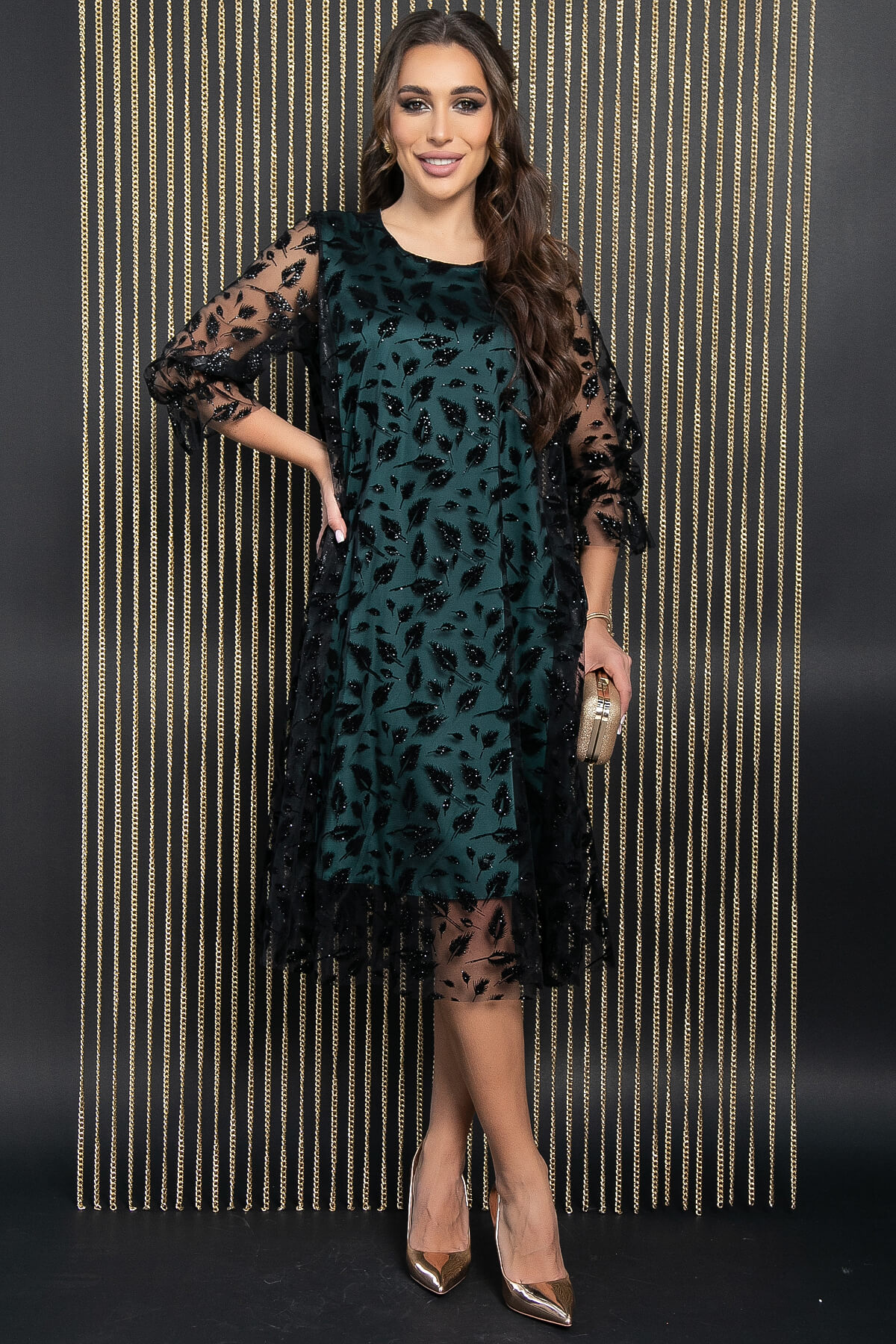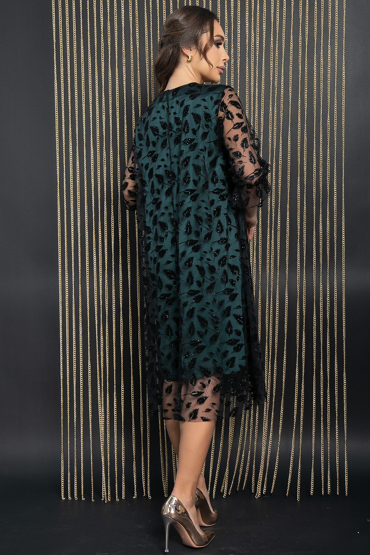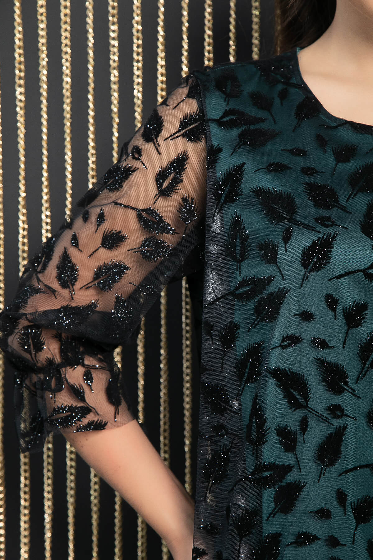 Легкое и воздушное платье создано для того, чтобы покорять сердца. Невероятное, мерцающее платье выполнено из переливающихся тканей двух цветов. Свободный крой скрывает недостатки фигуры. Рукав длинный, втачной, выполнен из сетки с принтом, по низу украшен воланом. Нарядное платье хорошо стилизуется с классическими туфлями.