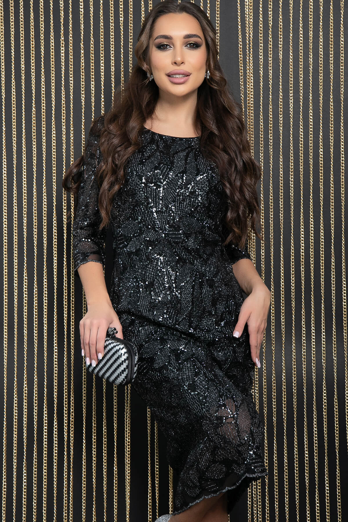 Уникальное платье расшитое пайетками - ваш идеальный выбор для праздников. Особенность этого наряда - узоры из пайеток, которые добавляют неповторимого сияния и блеска. Облегающий силуэт и длина миди подчеркнут ваши формы, делая вас сногсшибательной и привлекательной. Детали, такие как округлый вырез и легкие рукава 3/4 , добавляют изысканный вид. Хорошо стилизуется с туфлями-лодочками.