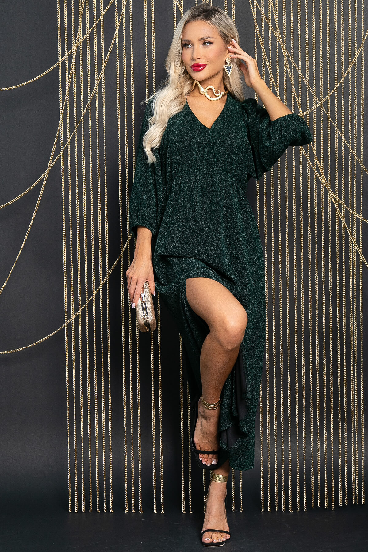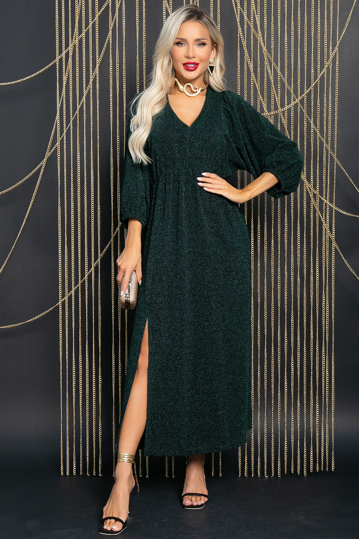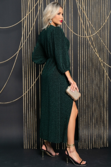 Погрузитесь в атмосферу роскоши и элегантности с нашим потрясающим платьем, выполненным из трикотажной ткани с люрексом. Это платье станет вашим незаменимым спутником на всех значимых мероприятиях — будь то свадьба, выпускной, вечеринка или любое другое важное событие. Разрез спереди придаст образу легкость и подчеркнет стройность ваших ног. Платье на резинке по талии, рукав 3/4 на резинке, что обеспечивает комфорт и удобство в носке.