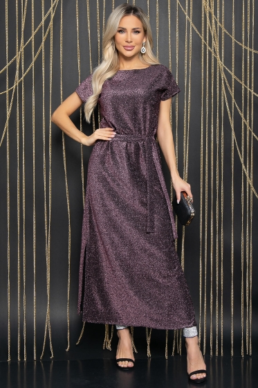 Платье создано для того, чтобы его обладательница сияла! Платье прямого кроя с укороченным, цельнокроеным рукавом. Образ дополняет наличие разрезов на боковых швах изделия. Талия на резинке. В комплект входит пояс из основной ткани.