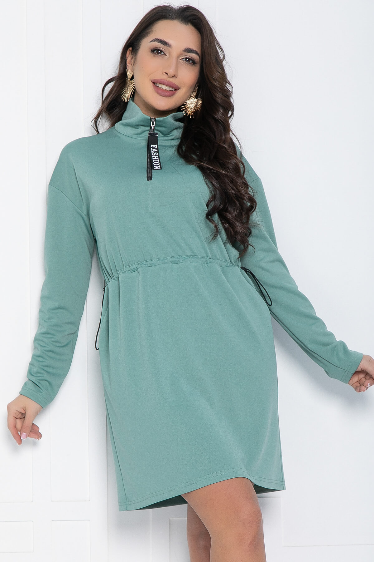 Платье спортивного типа с высоким горлом и застежкой на молнии — идеальный выбор для активных и современных женщин. Оно сочетает в себе комфорт и элегантность, а благодаря кулиске на талии с узкой резинкой и регуляторами, вы сможете подчеркнуть свою талию. Удобные карманы, расположенные по бокам, делают это платье не только стильным, но и функциональным.