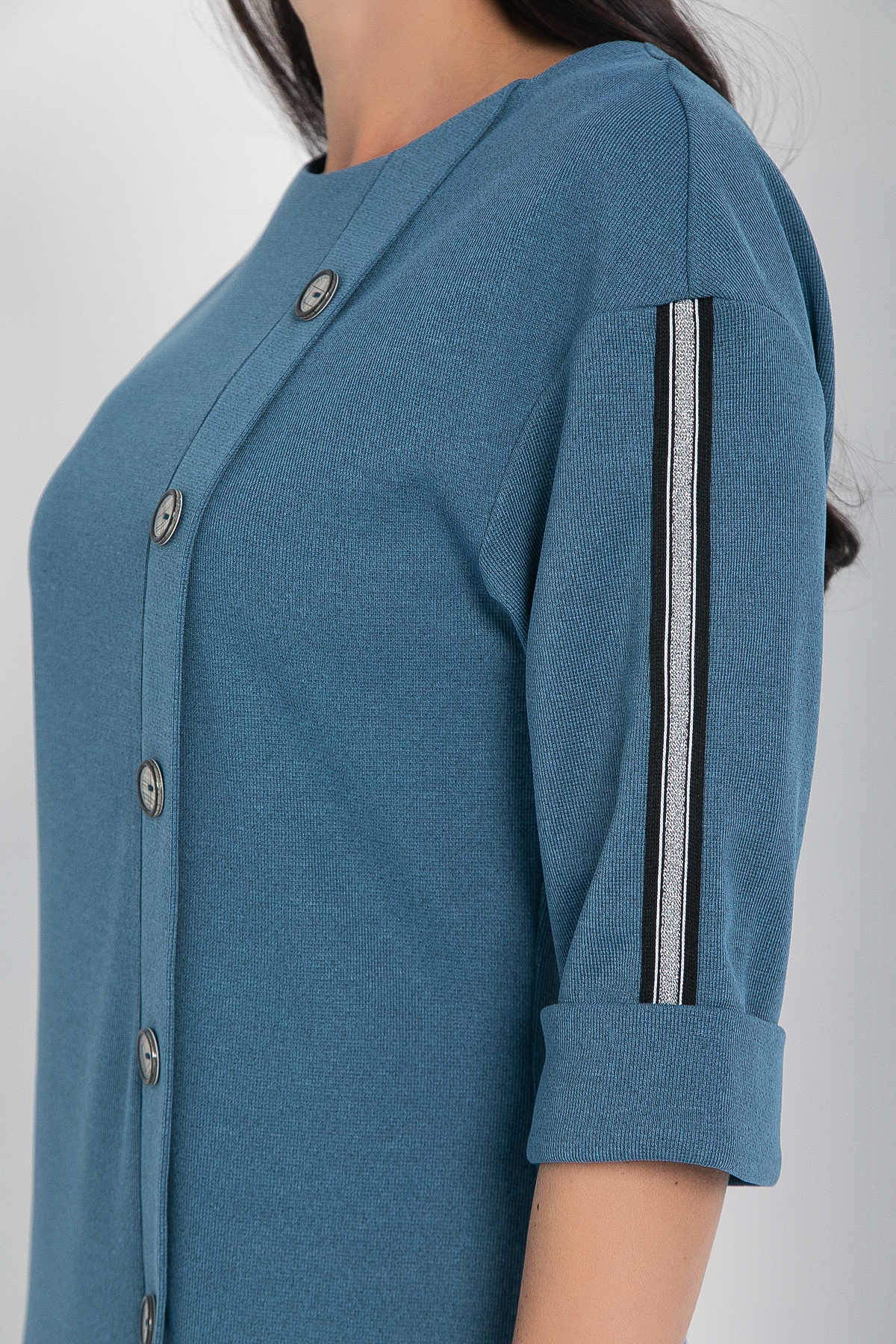 Декоративные элементы: лампасы на рукавах и пуговицы по переду.