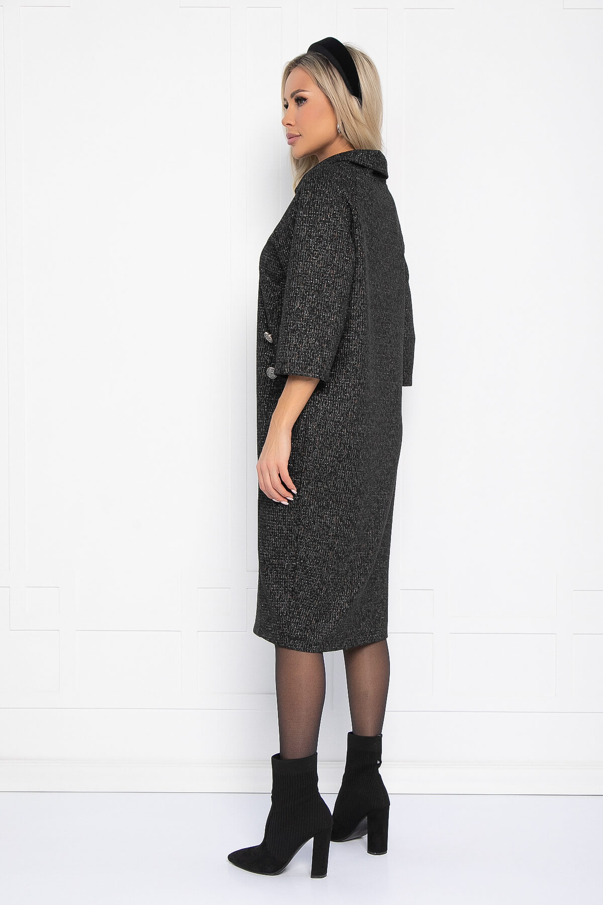 Платье-футляр — это воплощение стиля и удобства. Оно имеет свободный крой в области талии, который плавно сужается к низу, создавая изящный силуэт. Воротник-хомут придаёт платью изысканность, а рукав-реглан длиной 3/4 обеспечивает свободу движений и комфорт. Декоративные пуговицы на передней части платья добавляют ему изюминку и подчёркивают его уникальность. Благодаря универсальному крою, это платье подходит для любого типа фигуры, позволяя каждой женщине чувствовать себя уверенно и привлекательно. Это платье — идеальный выбор для офисных встреч, вечерних выходов или повседневных образов.