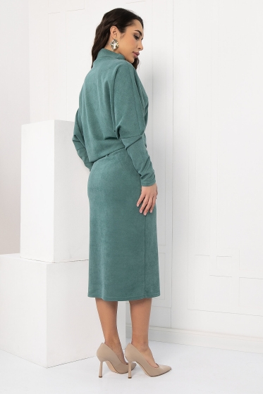 Изысканное асимметричное платье, сочетающее в себе стиль и комфорт. Его асимметричный крой придаёт образу оригинальность и динамичность. Верх платья скроен по типу «летучая мышь», что создаёт ощущение лёгкости и воздушности. Отрезная талия на резинке идеально подчёркивает фигуру и обеспечивает идеальную посадку, что делает это платье подходящим для разных типов фигур. Воротник-стойка цельнокроеный, что придаёт платью элегантность. Это платье станет идеальным выбором для вечерних выходов, деловых встреч или прогулок по городу. Сочетайте его с любимыми аксессуарами и обувью, чтобы создать стильный образ!