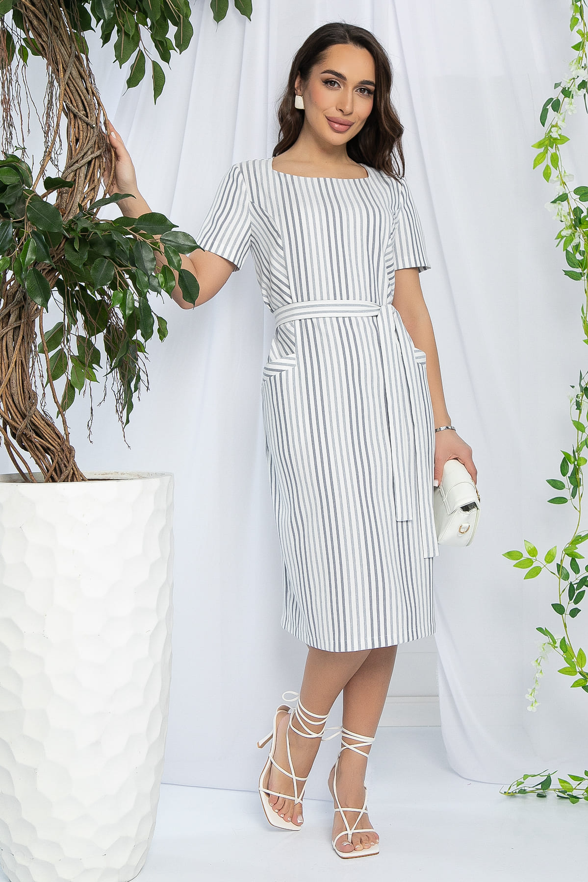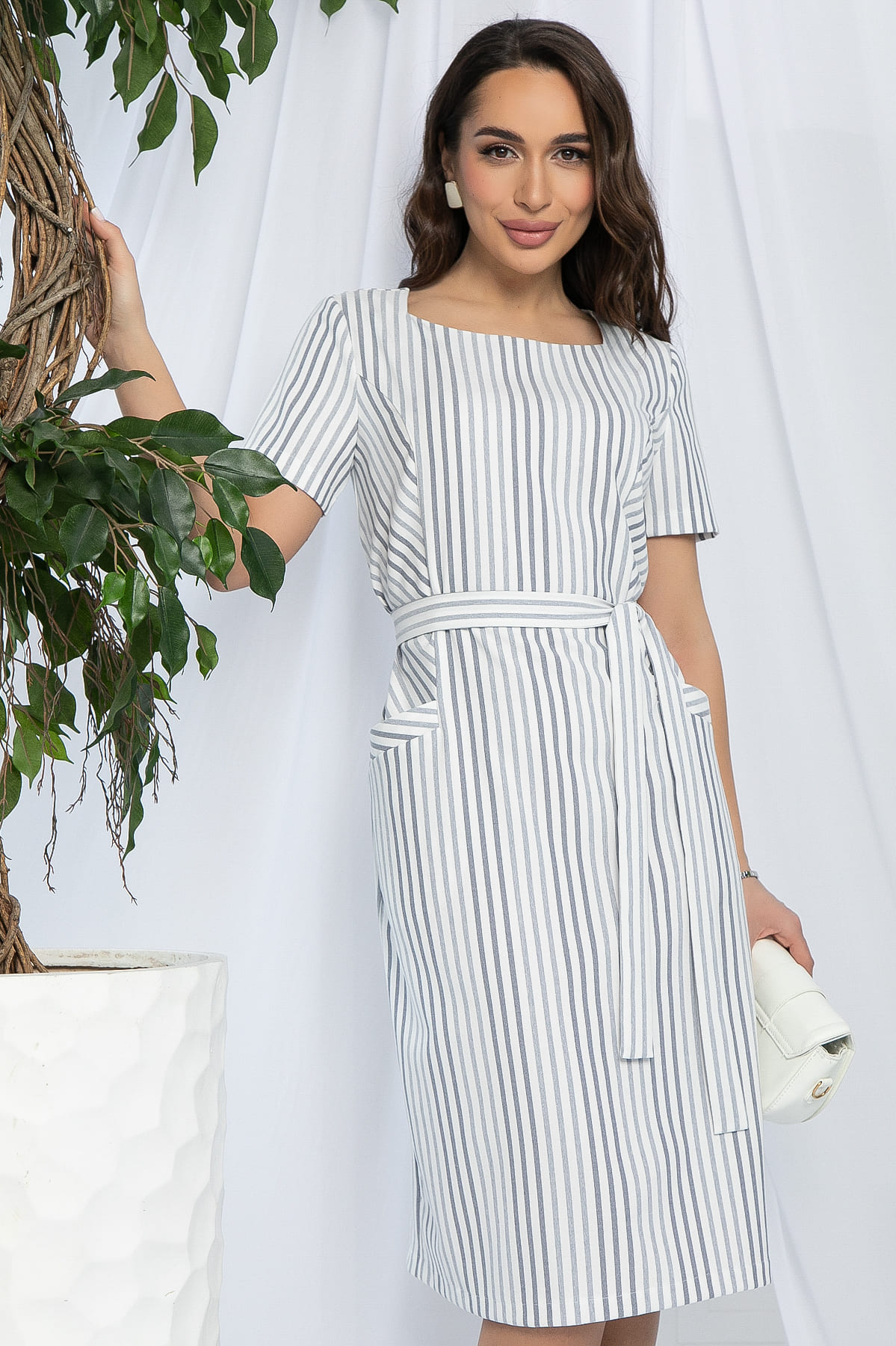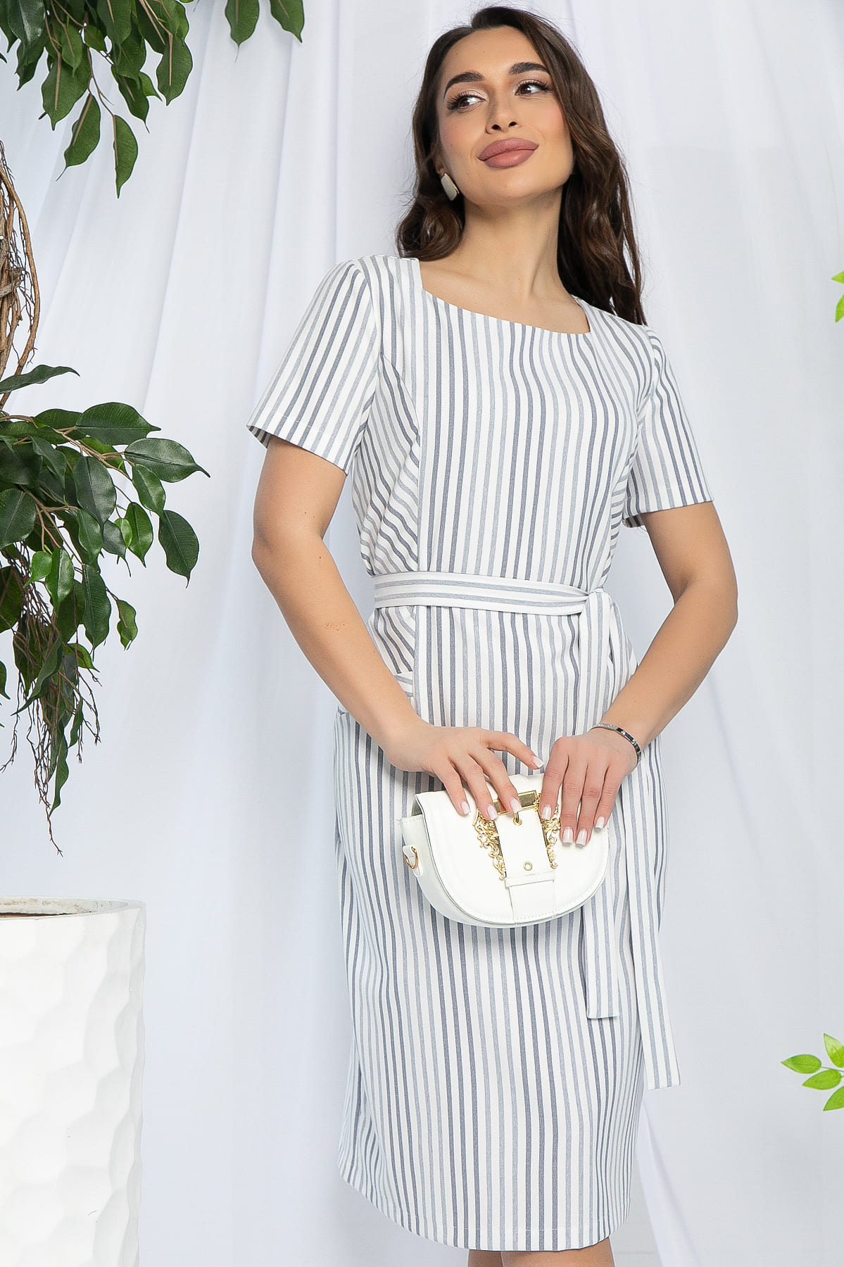 Платье в полоску - стильное и оригинальное решение в гардеробе каждой женщины. Оно поможет акцентировать внимание на красивой фигуре, а также скрыть недостатки нестандартной комплекции. Такое платье прекрасно дополнит ваш базовый гардероб. Вырез горловины - каре красиво подчеркнет ключицы. Рукав втачной, короткий. Принт "полоска" визуально вытянет фигуру и сделает стройнее. В комплекте пояс из основной ткани.