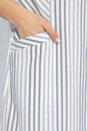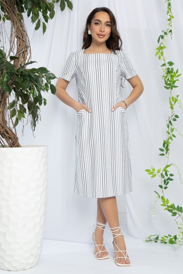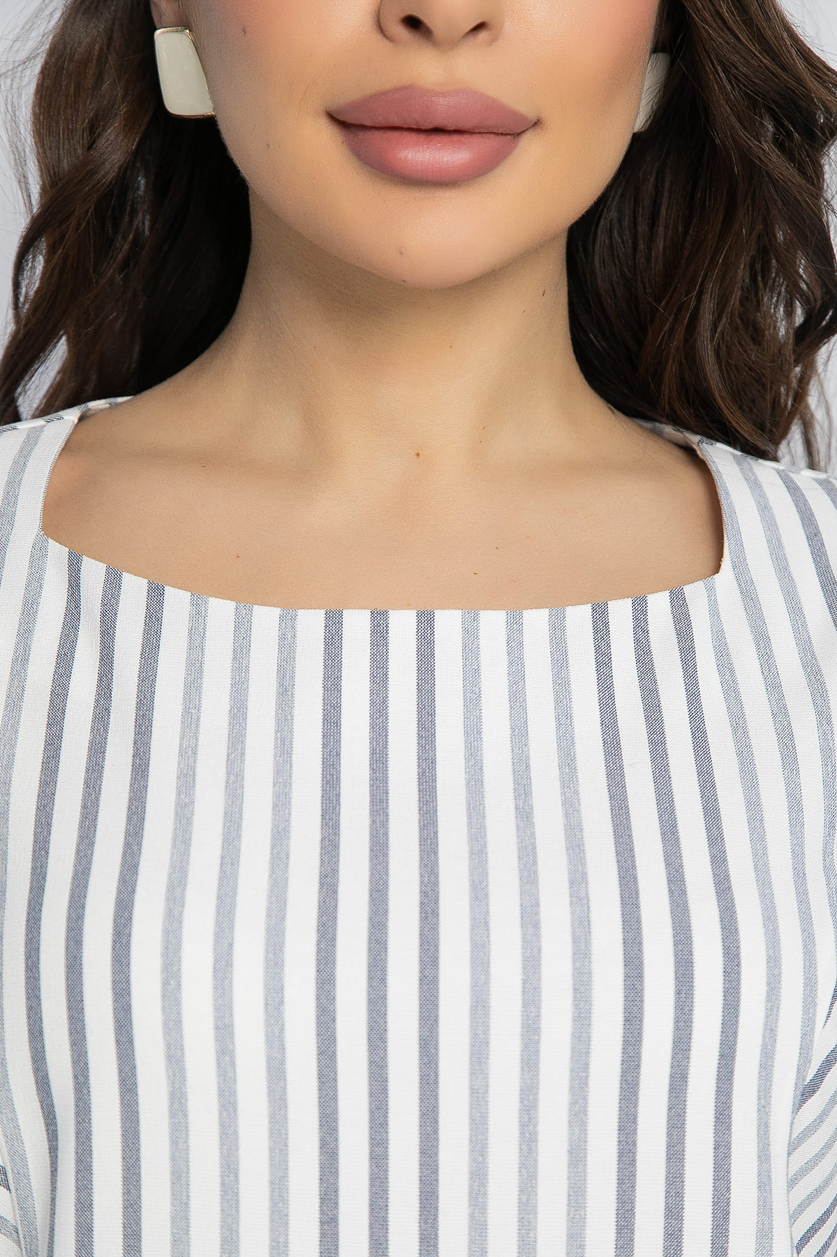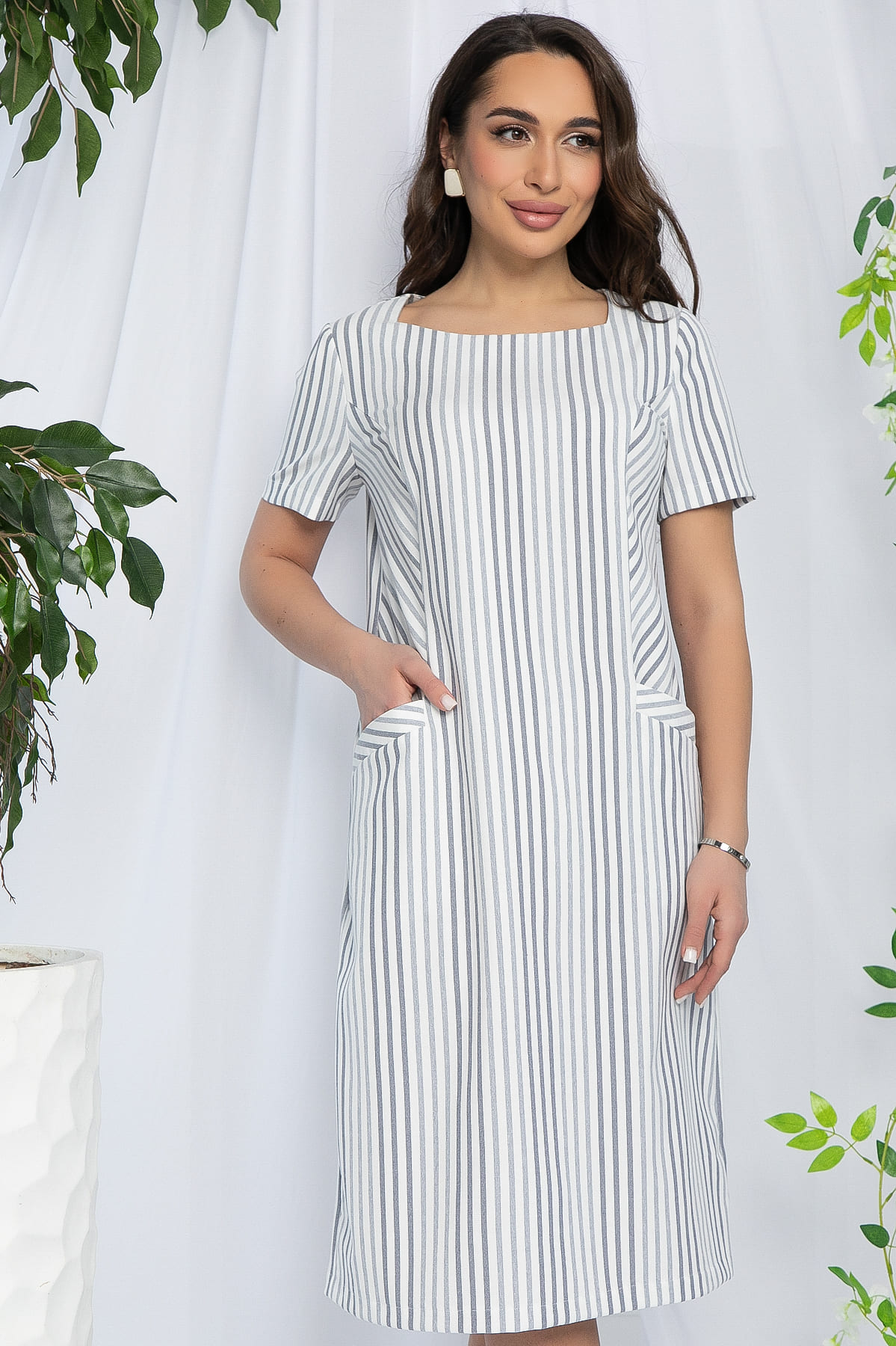 Платье в полоску - стильное и оригинальное решение в гардеробе каждой женщины. Оно поможет акцентировать внимание на красивой фигуре, а также скрыть недостатки нестандартной комплекции. Такое платье прекрасно дополнит ваш базовый гардероб. Вырез горловины - каре красиво подчеркнет ключицы. Рукав втачной, короткий. Принт "полоска" визуально вытянет фигуру и сделает стройнее. В комплекте пояс из основной ткани.