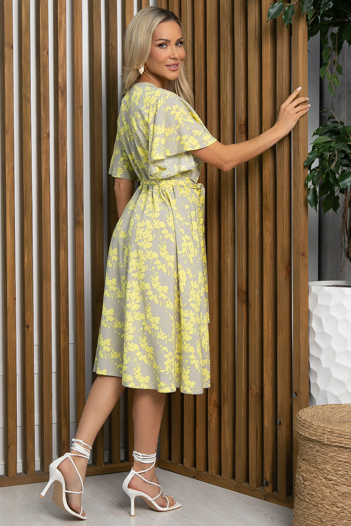Воздушное, лёгкое и удобное платье — идеальный выбор для тех, кто хочет выглядеть эффектно! Оно прекрасно сочетается как с босоножками на каблуке, так и с кроссовками или кедами, что позволяет создавать разнообразные образы на любой случай. V-образная горловина и рукава с воланами придают платью романтичный и игривый вид, а тканевый пояс подчеркивает талию, создавая изящный силуэт.
