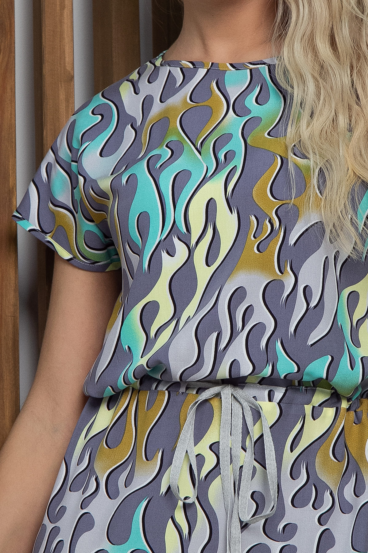 Универсальное платье отлично разнообразит ваш гардероб. Его можно носить как в стиле кэжуал, так и сочетать со спорт шик. Платье прямого кроя с укороченным, цельнокроеным рукавом. Образ дополняет наличие разрезов на боковых швах изделия. Платье без подкладки. В линию талии вставлен шнурок.
