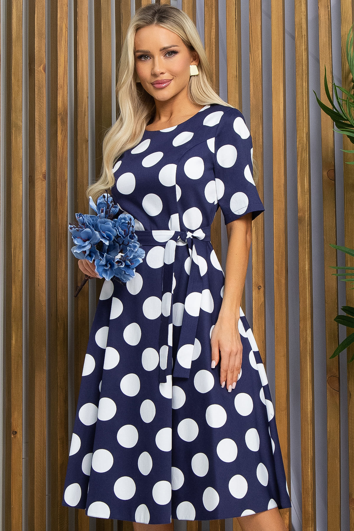 Синее платье с крупным принтом — это превосходный выбор для городских прогулок, пикников и отпуска. Модель выполнена из плотной ткани с сатиновым плетением. В комплект входит пояс из основной ткани, который не только подчёркивает талию, но и создаёт стильный силуэт. В боковых швах расположены карманы. По талии отрезное.