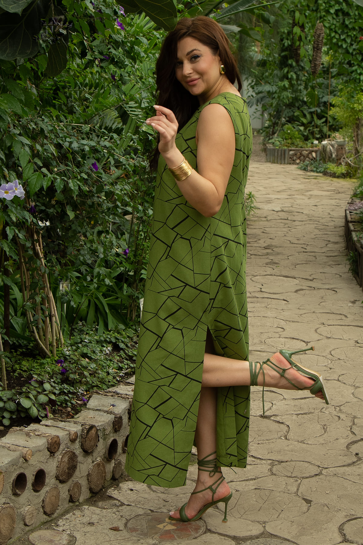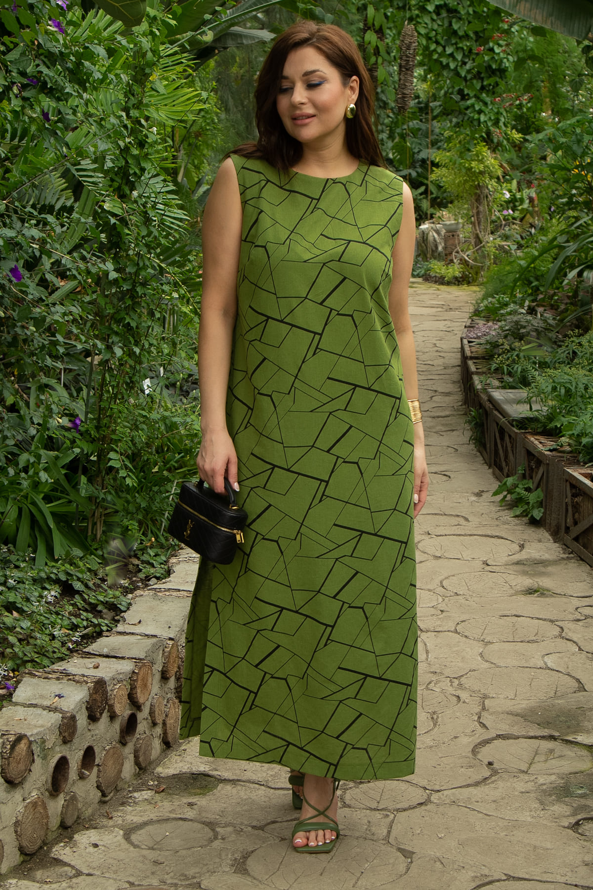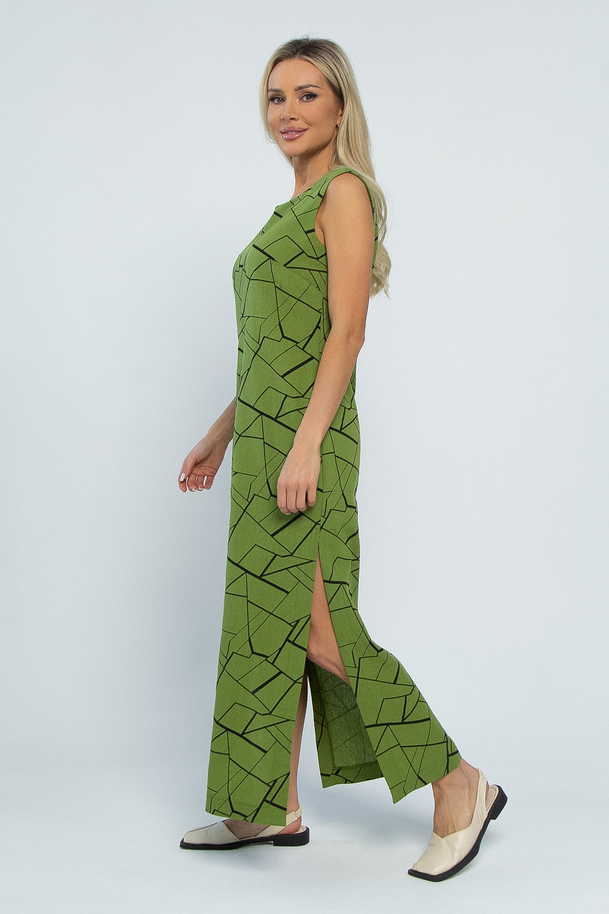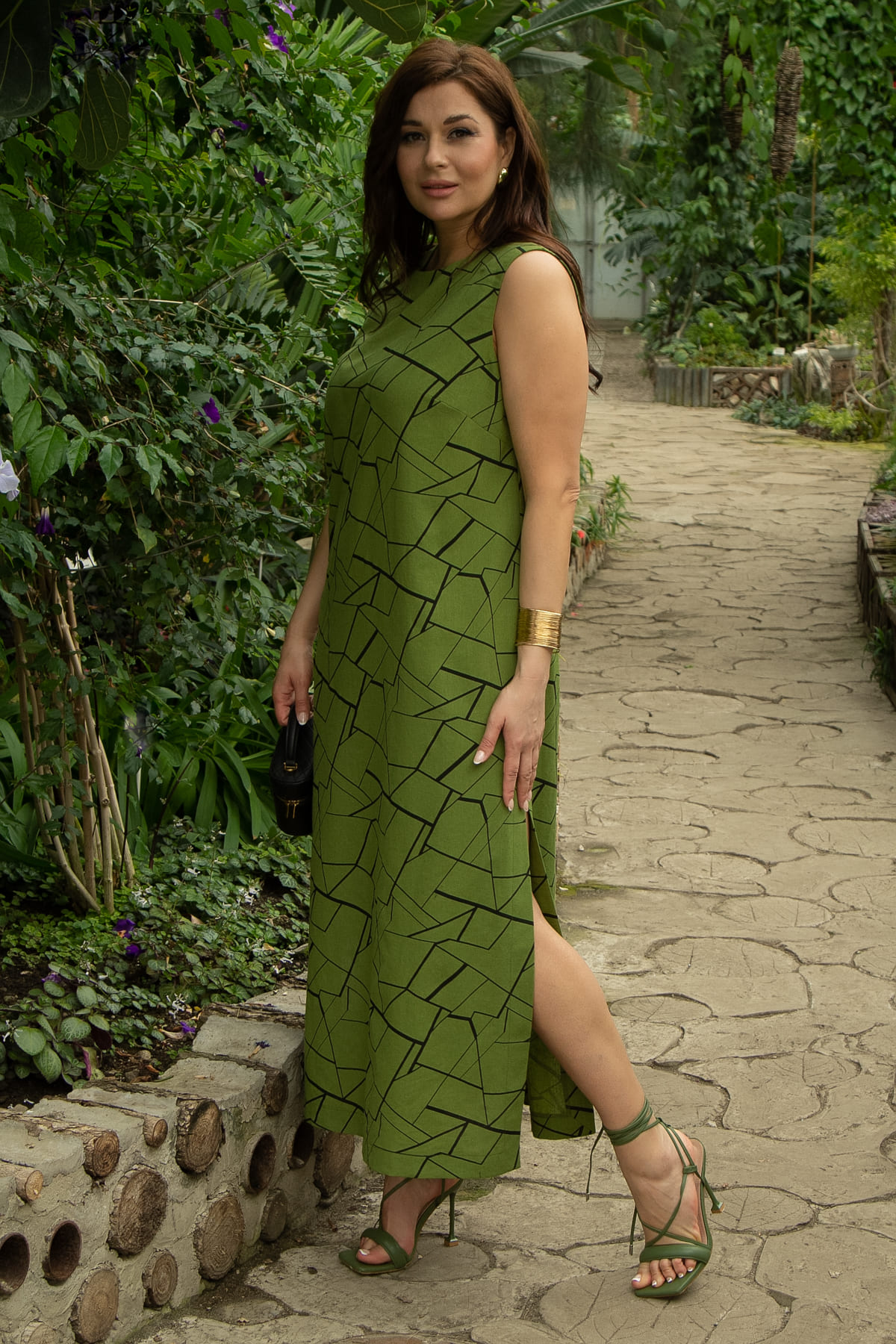 Платье полуприлегающего силуэта без рукавов — это превосходный выбор для тех, кто ценит стиль и элегантность. Потайная молния на спинке обеспечивает удобство в надевании, а горловина и пройма обработаны обтачкой, что придает платью аккуратный и завершенный вид. Разрезы по бокам добавляют нотку изящества и свободу движений.