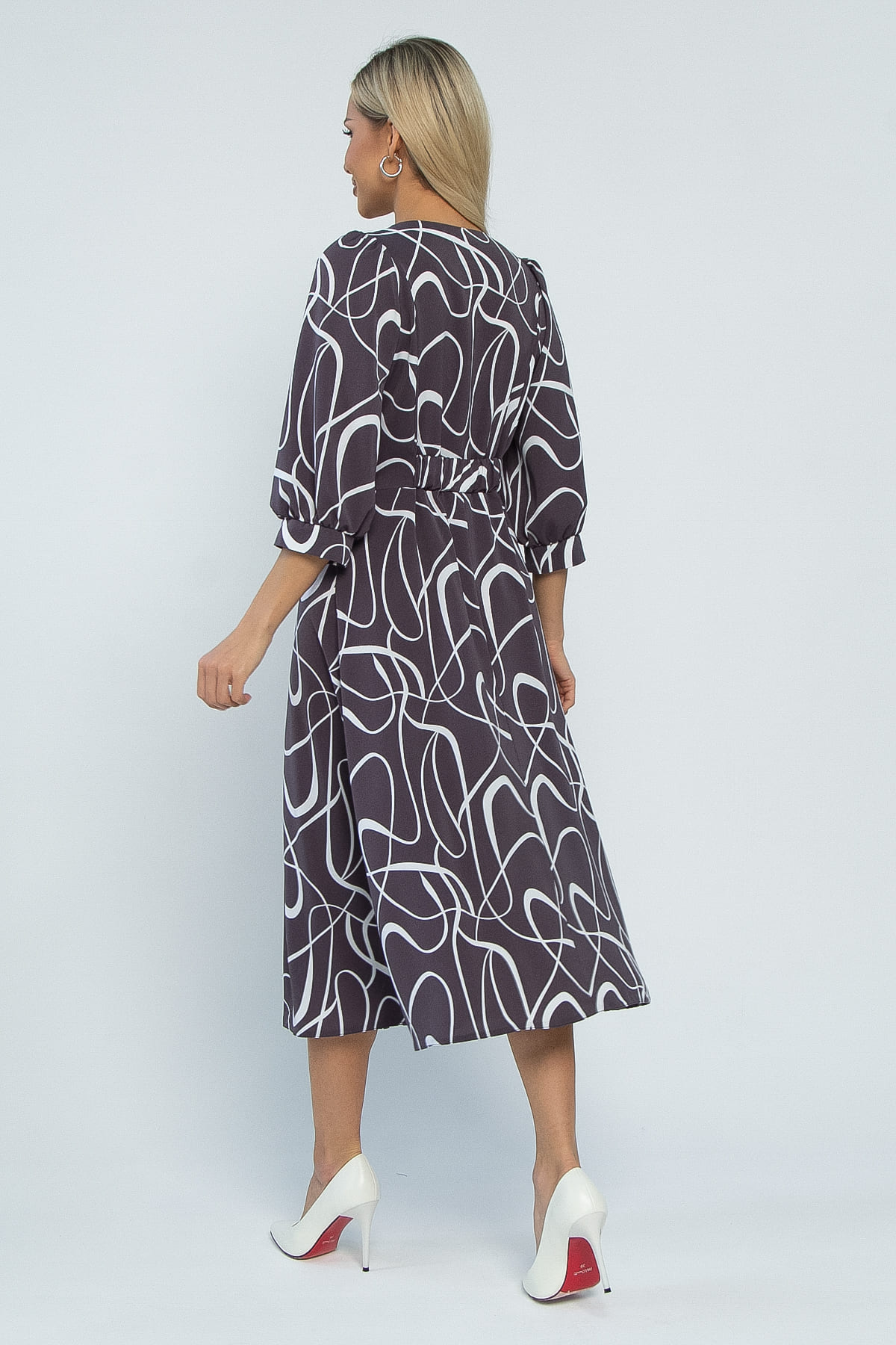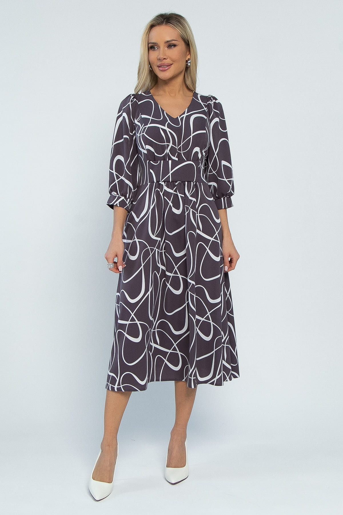 Платье средней длины с приталенным силуэтом станет настоящим украшением вашего гардероба! Благодаря отрезной линии талии оно подчёркивает фигуру, а расклешенная юбка придаёт образу лёгкость и женственность. Рукав-реглан средней длины на сборке завершается изящным манжетом, что делает платье ещё более утончённым. V-образная горловина добавляет в образ нотку изящества. Спереди платье украшено декоративным элементом в виде сборки, которую аккуратно закрывает втачной пояс. Сзади пояс аналогичный и собран на широкую резинку.