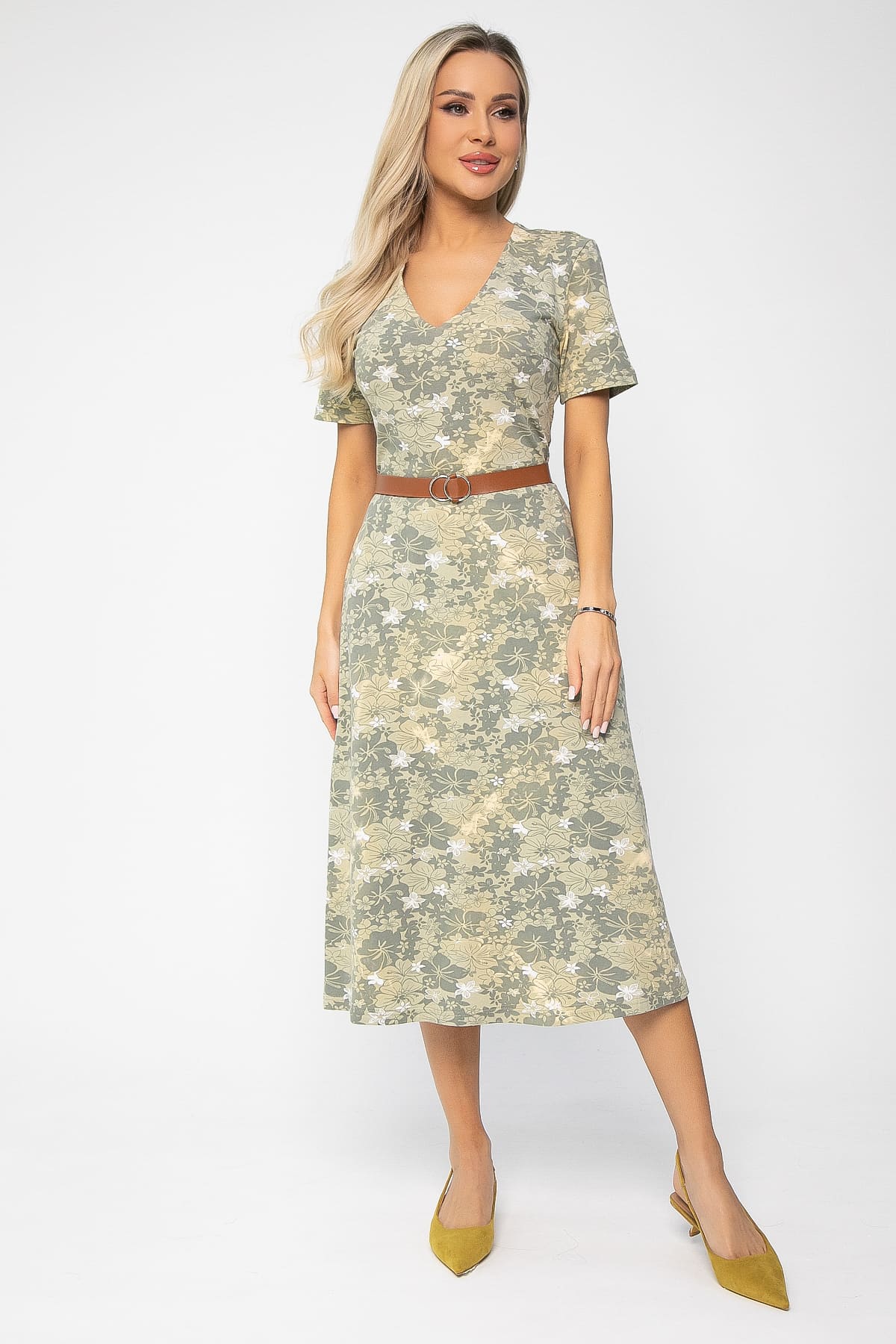 Платье с V-образным вырезом подчеркивает женственность и элегантность. Короткий рукав добавит романтичности и лёгкости, а пояс контрастного цвета помогает акцентировать талию. Отсутствие подкладки делает платье более легким и комфортным для носки. Это отличный выбор для различных мероприятий, от повседневных встреч до более торжественных случаев.