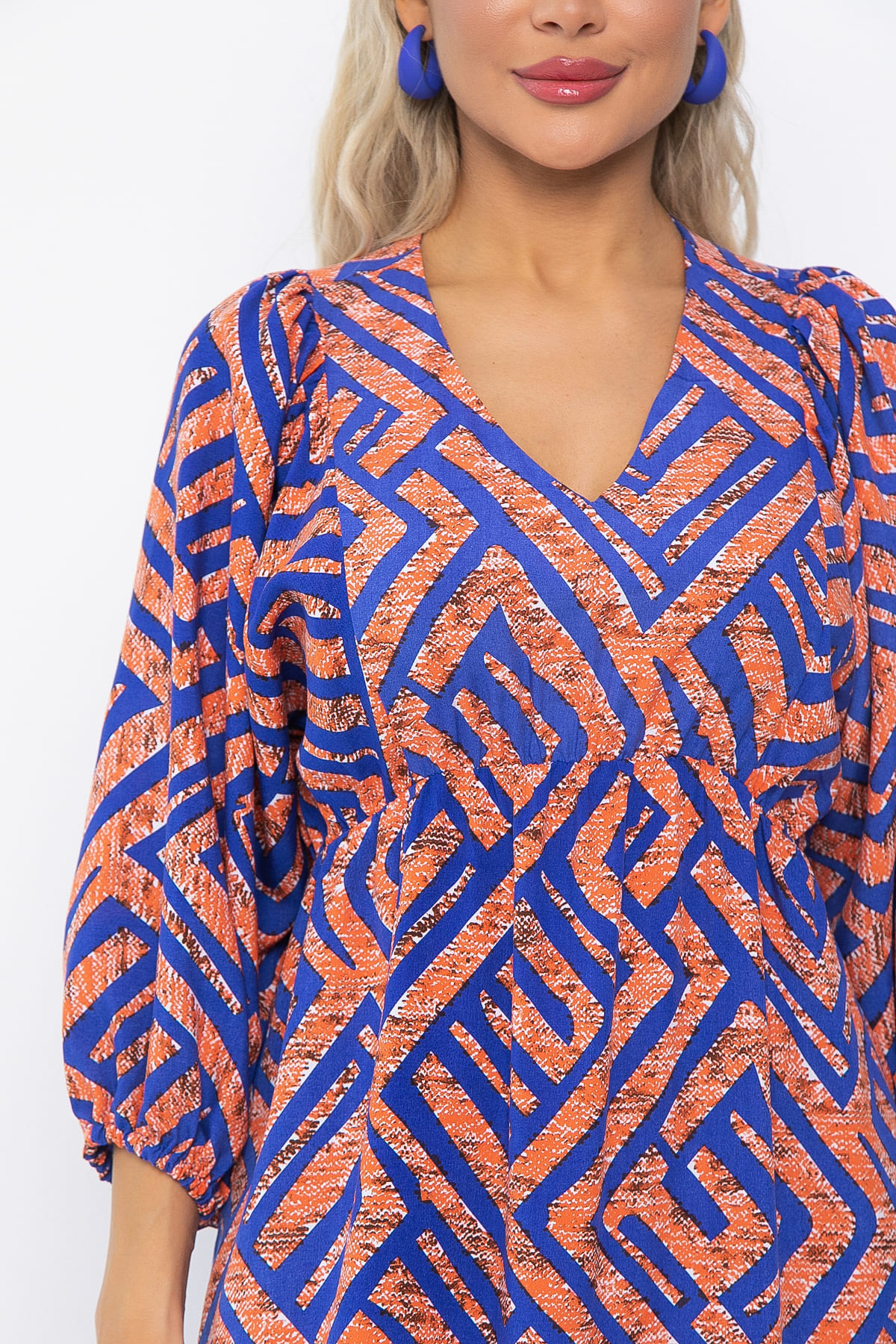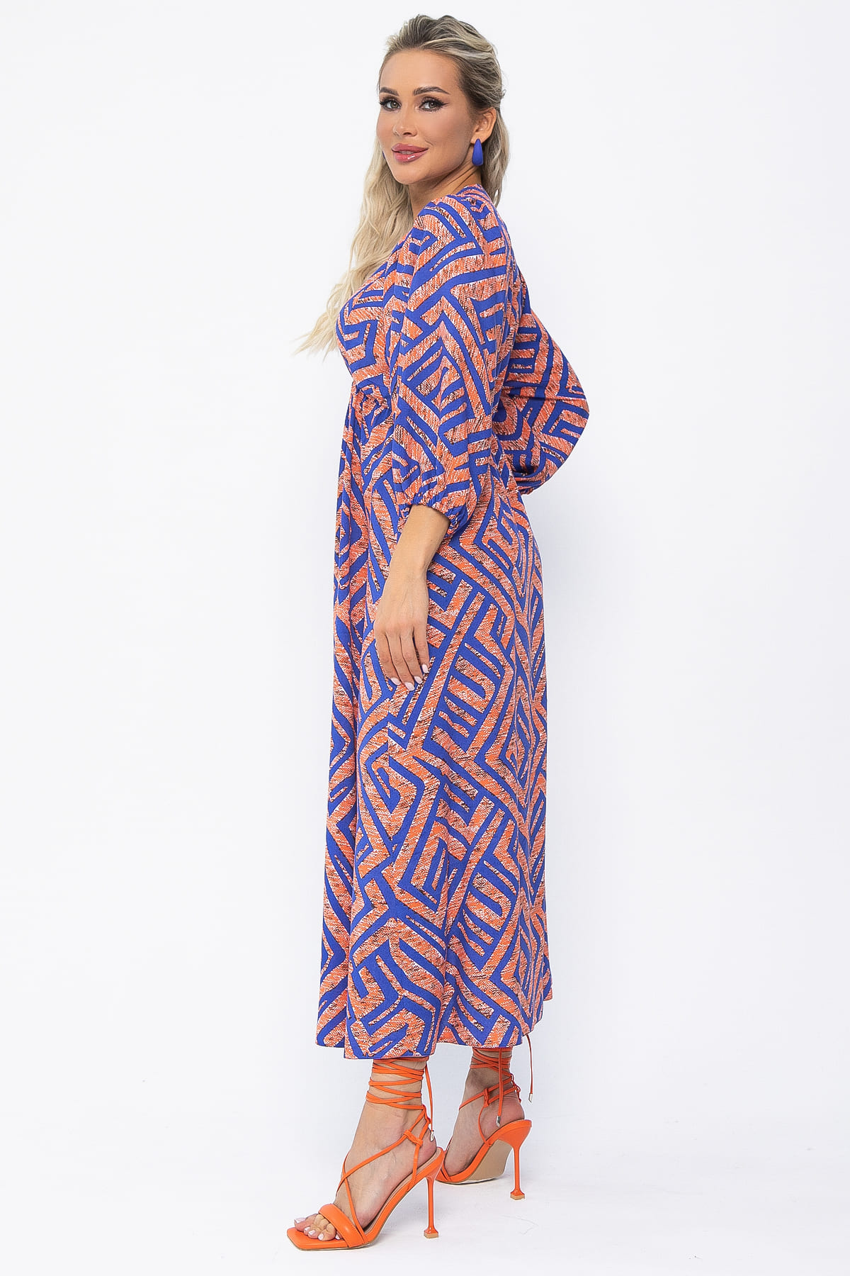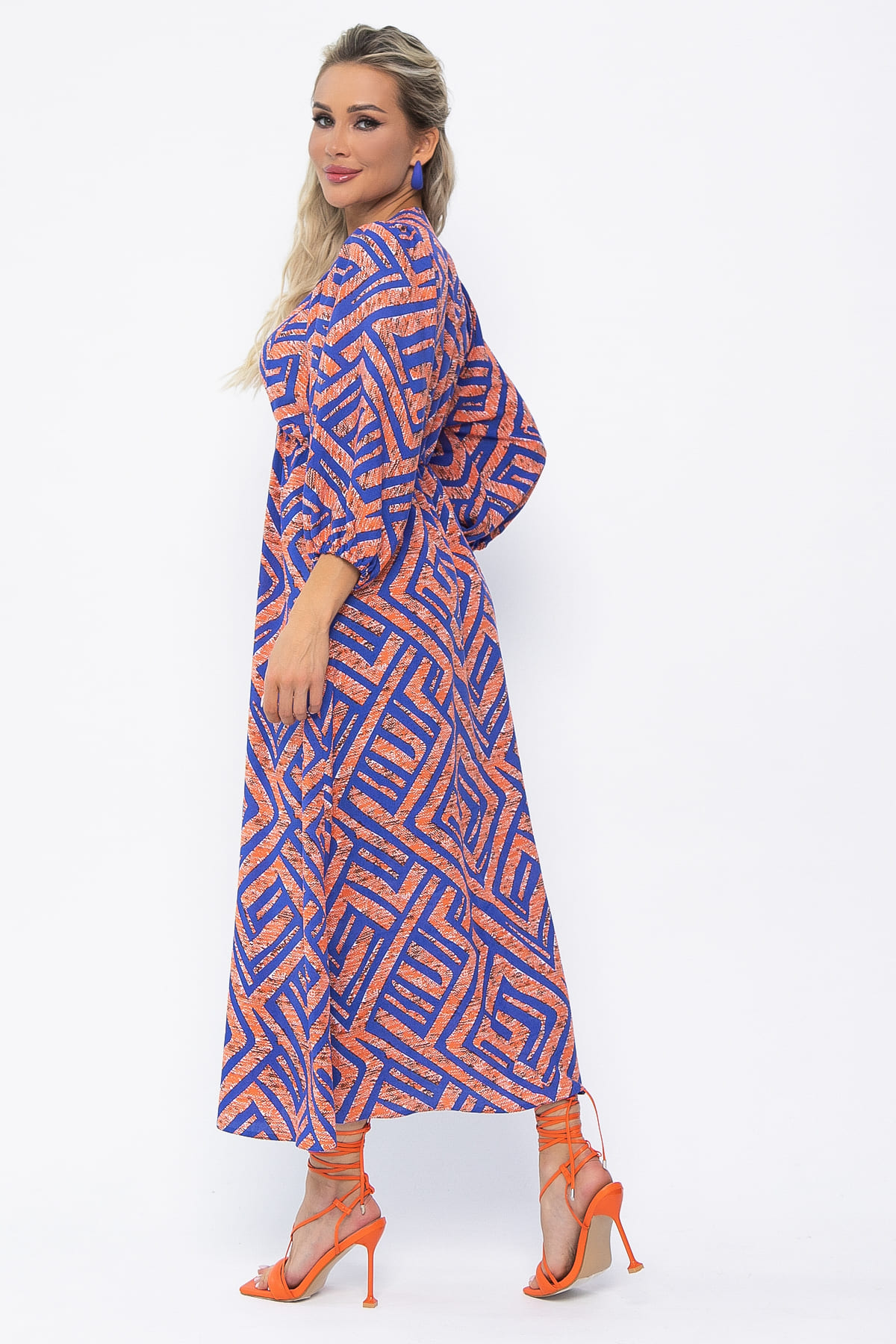 Лёгкое, воздушное, длинное летнее платье из штапеля — это то, что нужно для жаркой погоды! Оно не только удобное, но и красивое: яркий принт поднимет настроение и подчеркнёт вашу женственность. Оно отлично подходит для отдыха и прогулок, а также для города. Сочетайте его с разной обувью: туфлями, босоножками или кедами — и создавайте множество стильных образов! Платье имеет резинку по талии, рукав 3/4 на резинке и длинный разрез по ноге.