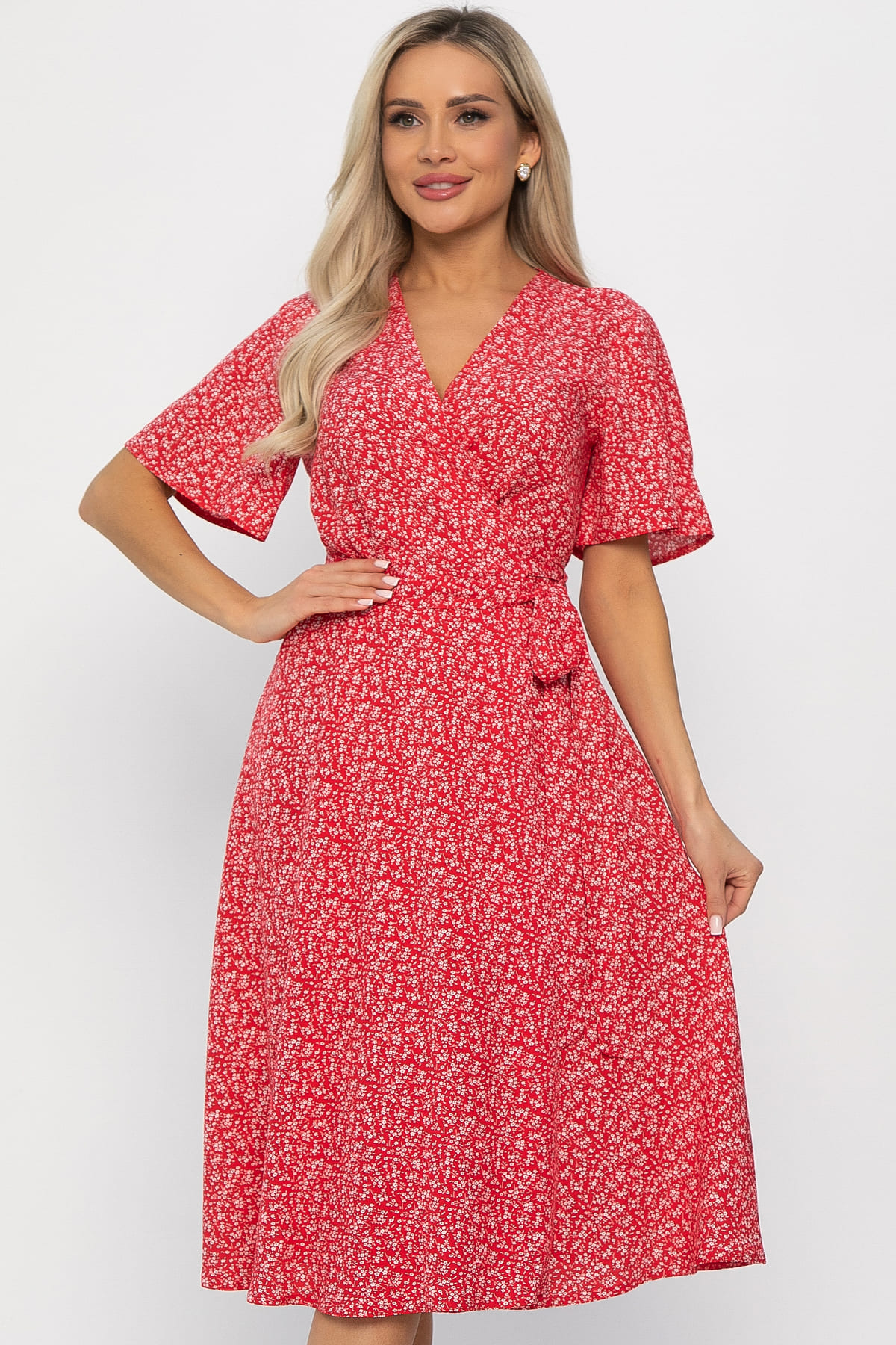 Яркое платье не оставит вас без внимания окружающих! Стильный и элегантный фасон позволит вам чувствовать себя женственно и привлекательно в любой ситуации. Платье на запах с V-образной горловиной и укороченными цельнокроеными рукавами обеспечивает комфорт и свободу движений. Вшитый пояс, завязывающийся сбоку, добавляет изюминку и подчеркивает силуэт. Это платье станет отличным выбором для особых случаев и повседневных выходов, позволяя вам выглядеть безупречно!