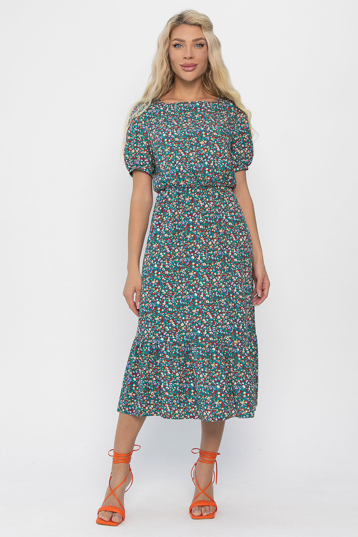 Летнее платье, которое подчеркнёт вашу женственность и подарит ощущение комфорта. Платье с квадратным вырезом горловины и рукавами-фонариками на резинке создают романтичный и игривый образ. Волан по краю юбки добавляет модели игривости. По талии на резинке. Идеально подходит для тёплых дней. Сочетайте его с любимой обувью и аксессуарами, чтобы создавать стильные и привлекательные образы как для повседневной носки, так и для особых случаев.