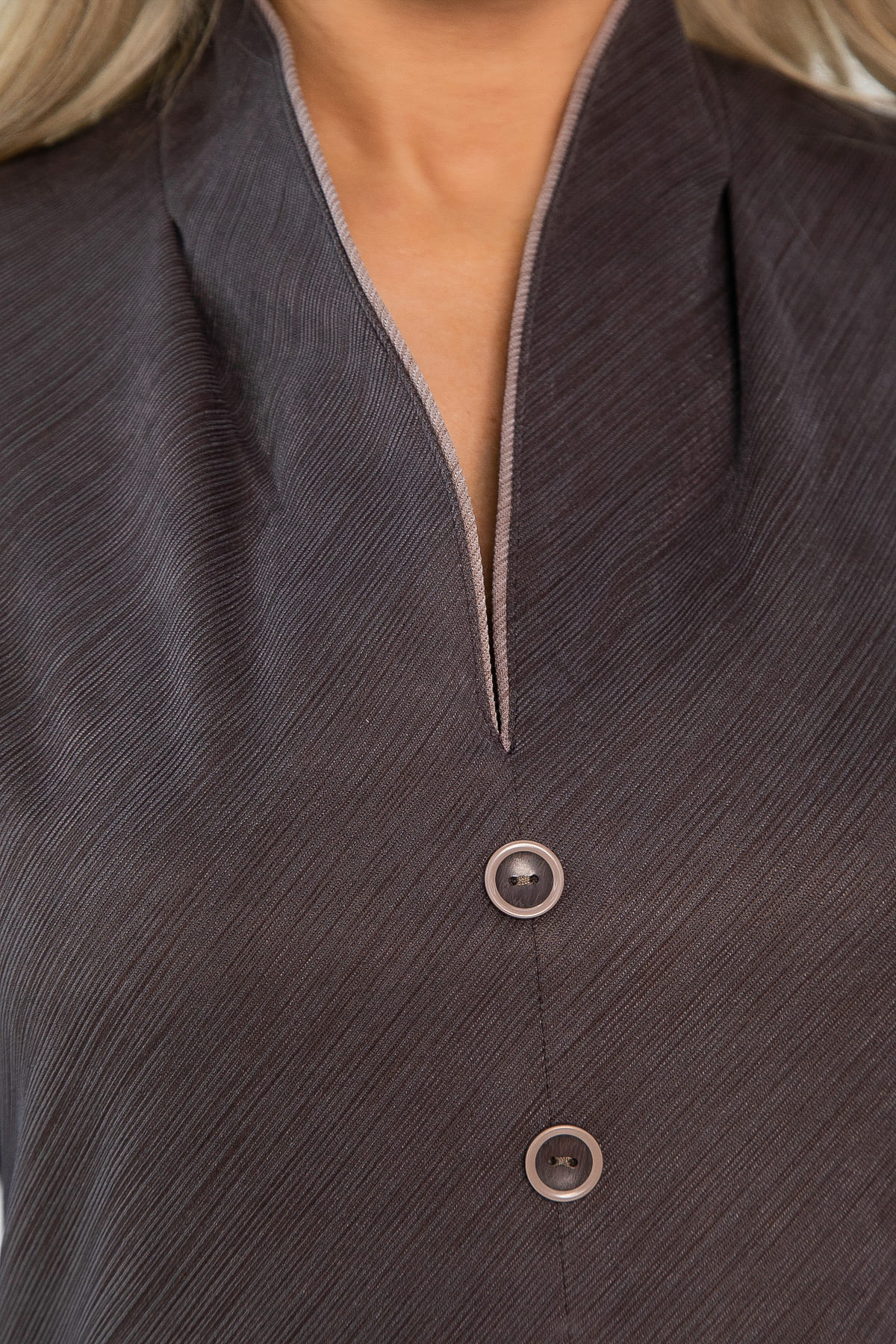 Элегантное платье полуприлегающего силуэта станет идеальным выбором для создания женственного образа! Спереди расположен интригующий разрез, придающий модели особый шарм. Уникальной особенностью этого платья являются декоративные элементы из ткани-компаньона на воротнике-стойке и манжетах рукавов. Втачные рукава длиной три четверти заканчиваются разрезом и украшены манжетами из ткани-компаньона. Воротник-стойка с обтачкой контрастного цвета плавно переходит в разрез у линии груди и продолжается рядом пуговиц до линии талии. В комплект входит пояс с пряжкой.