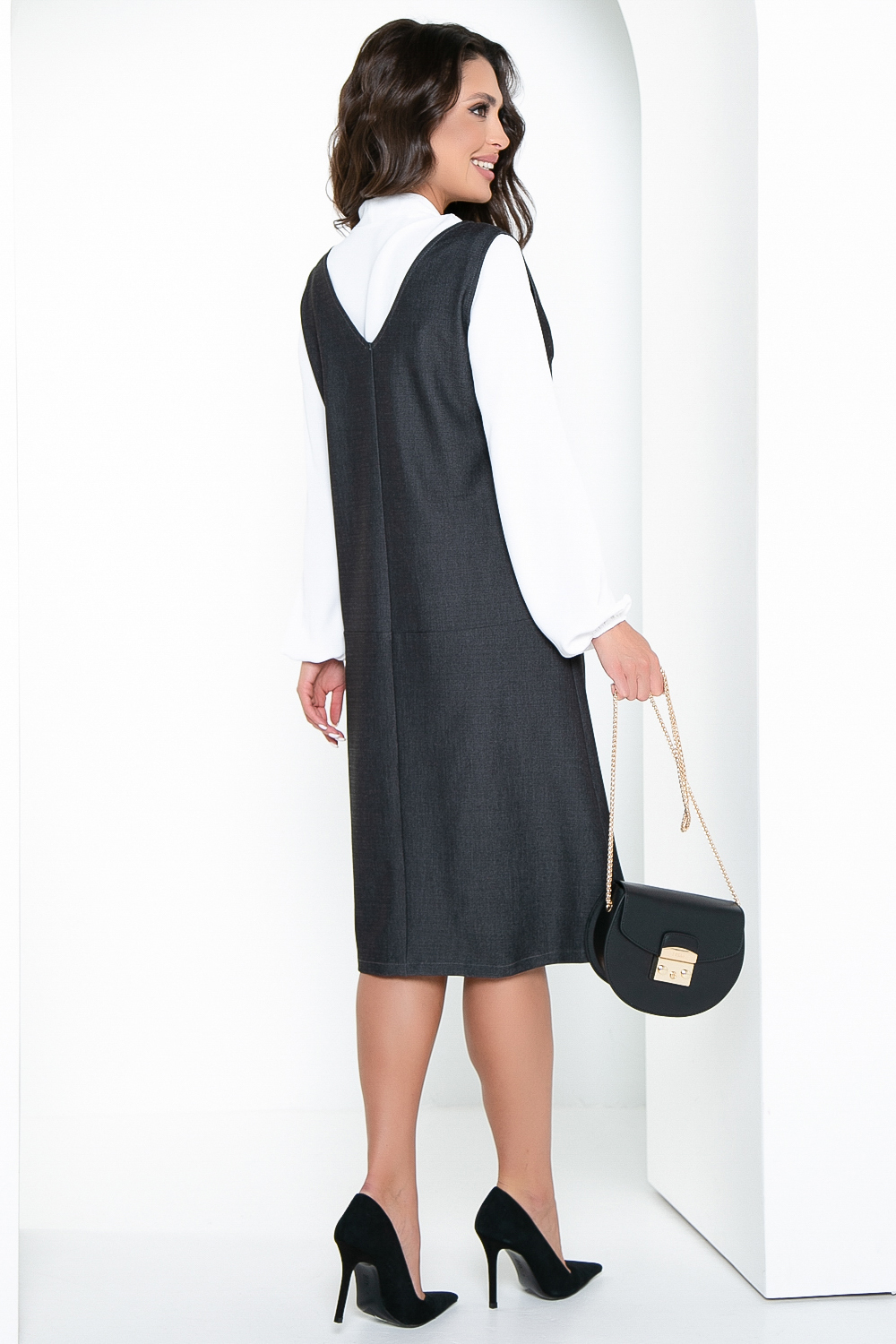 - Глубокий V - образный вырез по переду и спинке, позволяет носить сарафан с водолазкой, блузкой или легким свитером;
