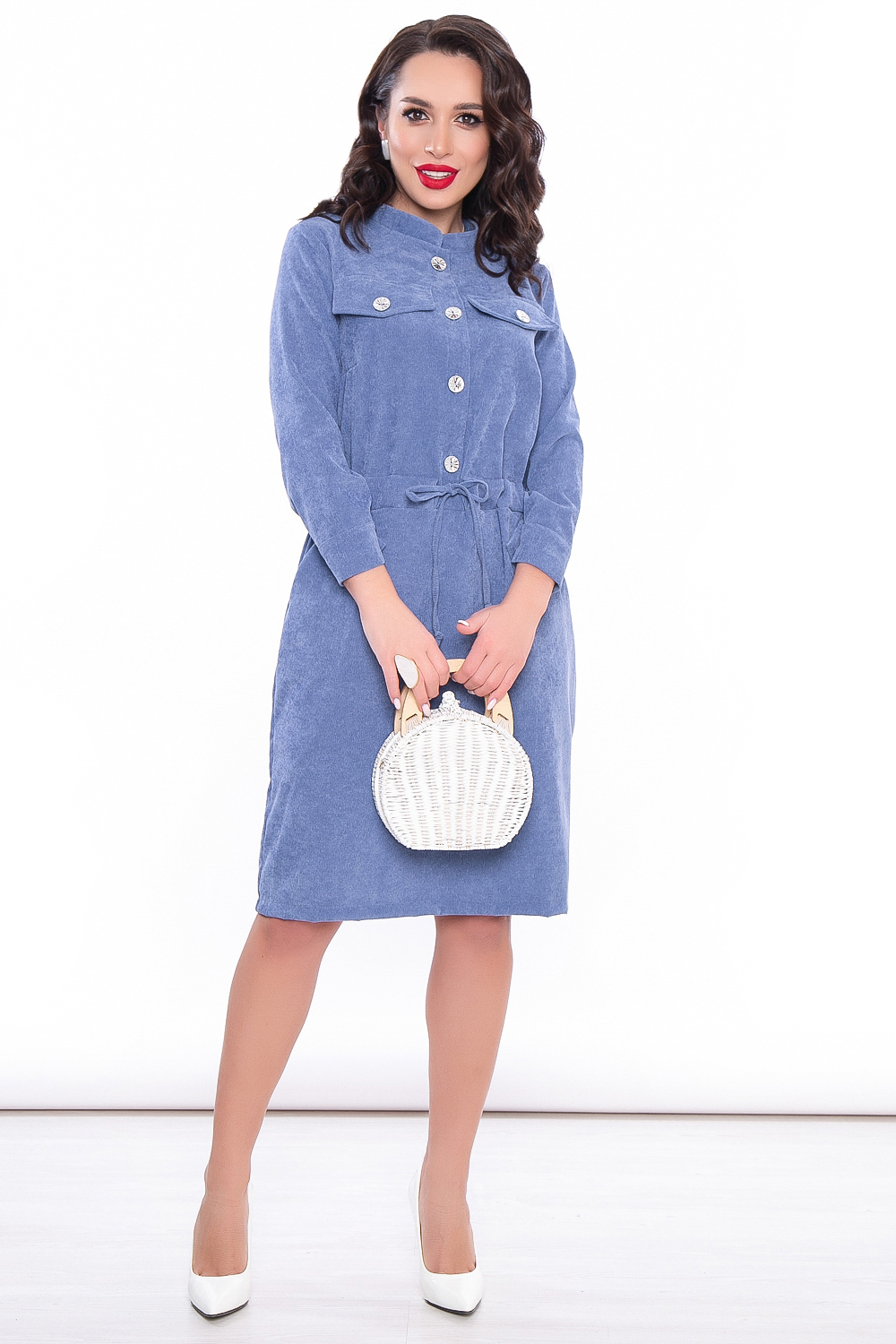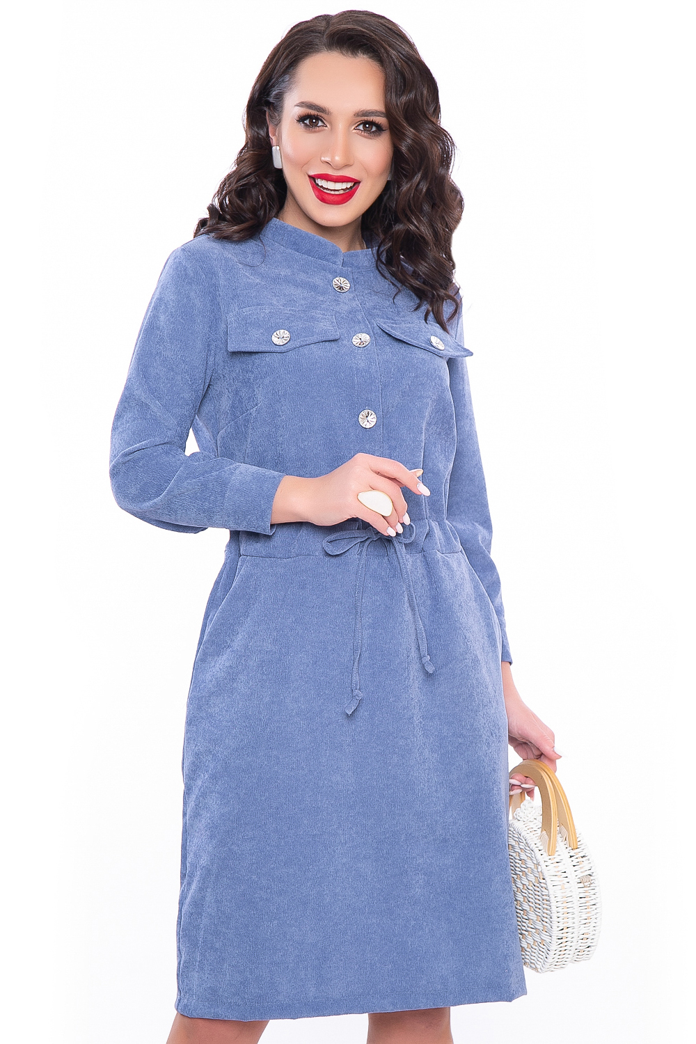 Вельветовое платье в джинсовом оттенке средней длины станет незаменимым на прохладный период. Комфорт, удобство, стильный фасон, гармоничная длина и ничего лишнего! Это абсолютно беспроигрышный вариант на каждый день!