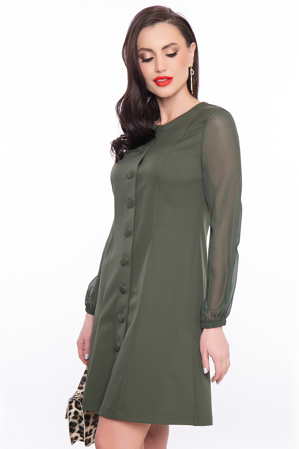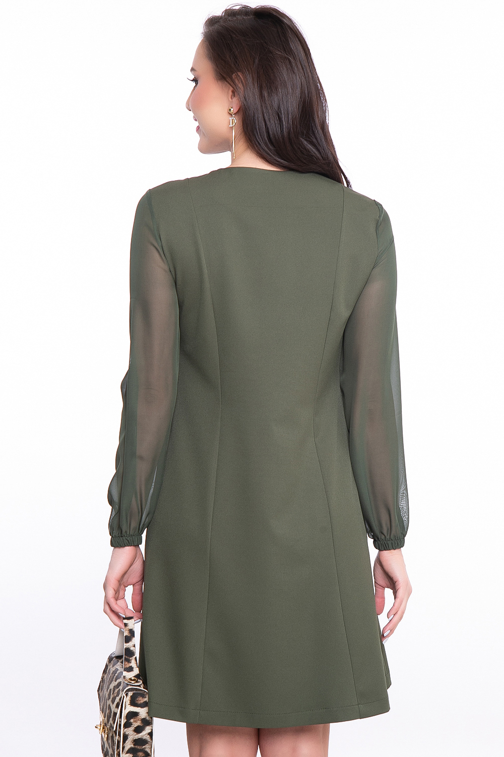- Рукав втачной, длинный, выполнен из шифона. Низ на резинке;