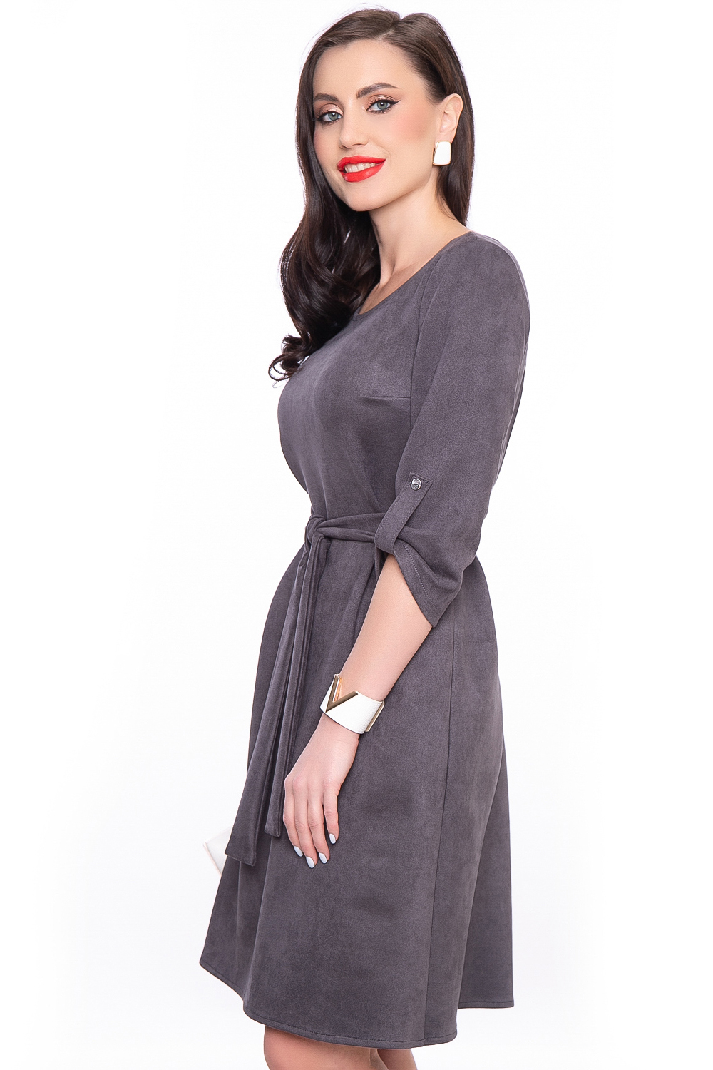 - Замшевое платье А-силуэта подойдёт, как для повседневного, так и для вечернего образа;