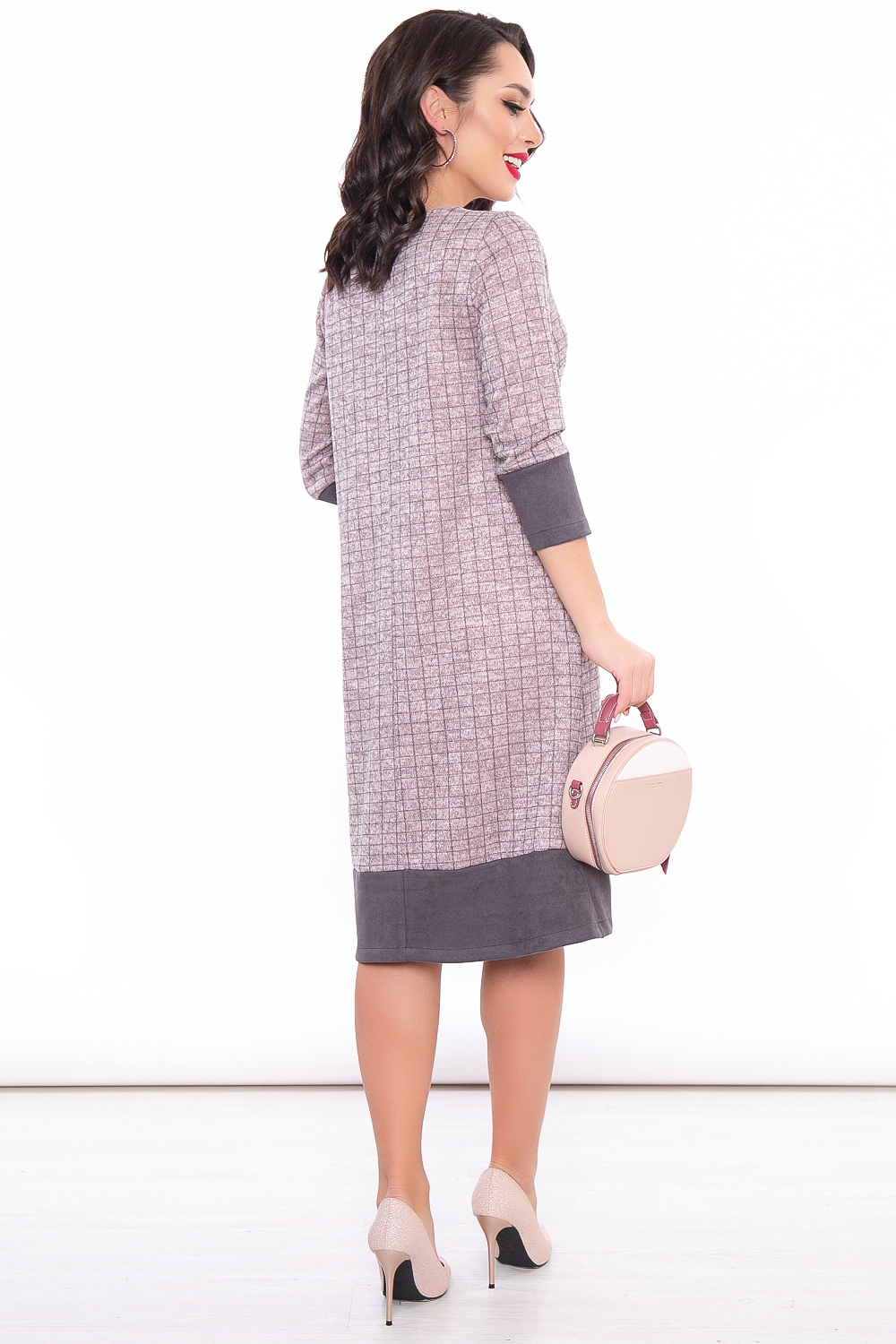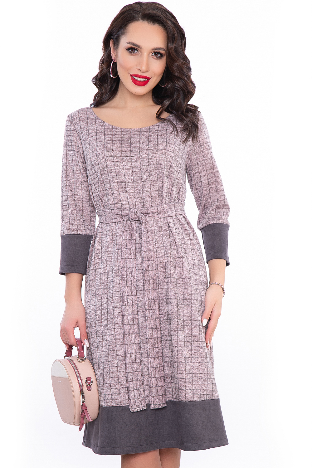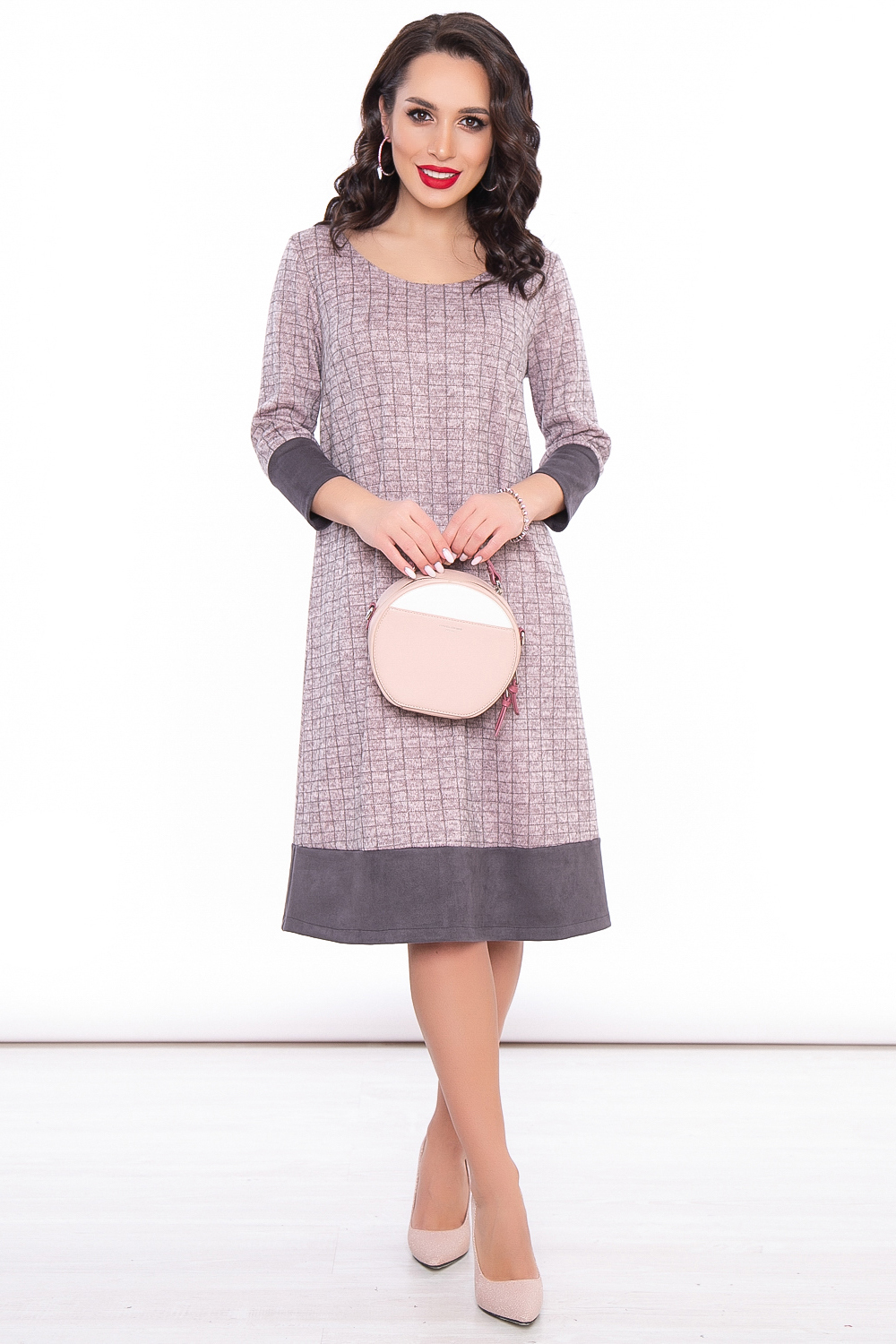 - Платье средней длины из комбинированных материалов;