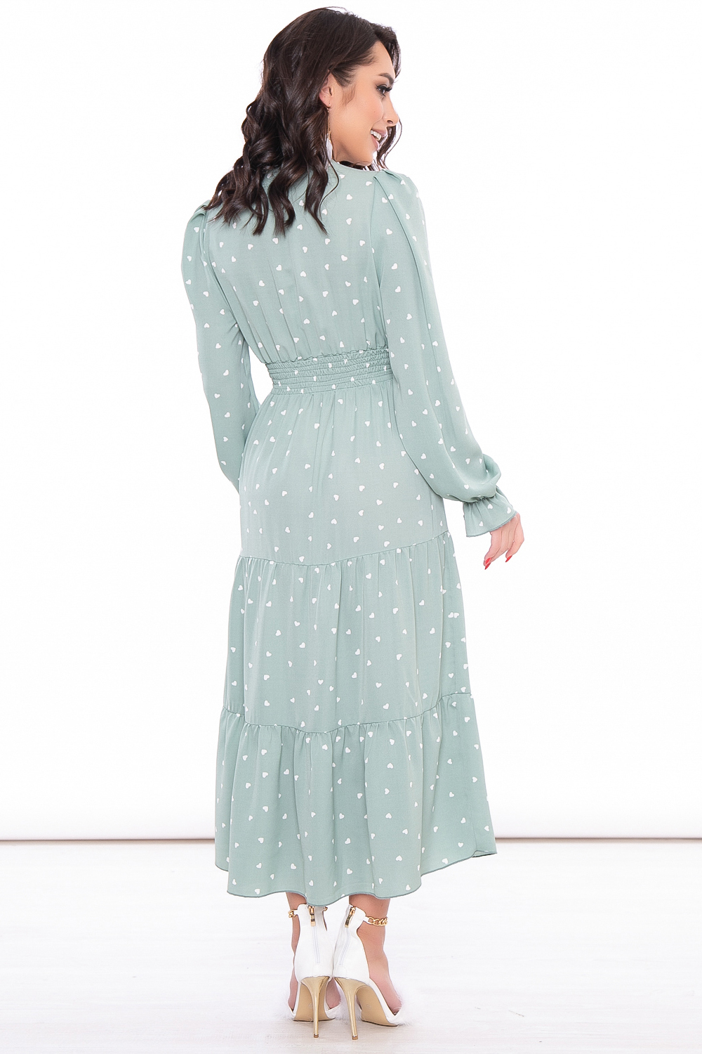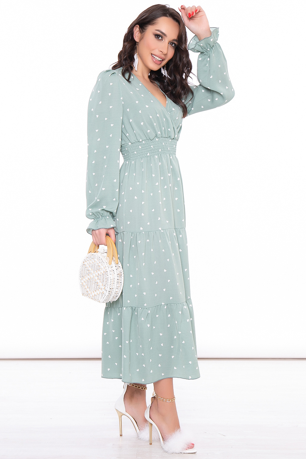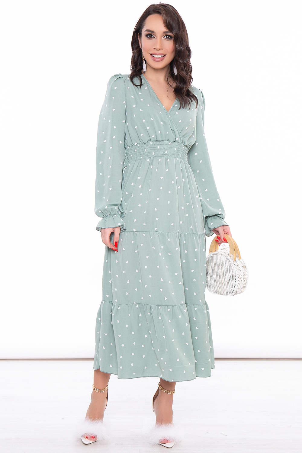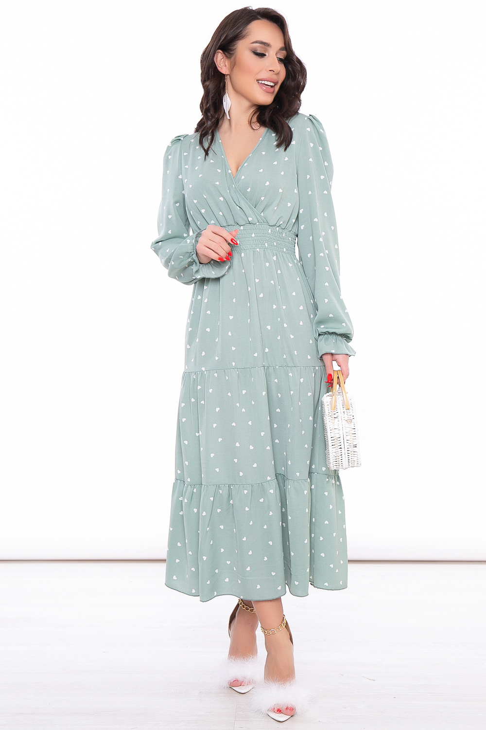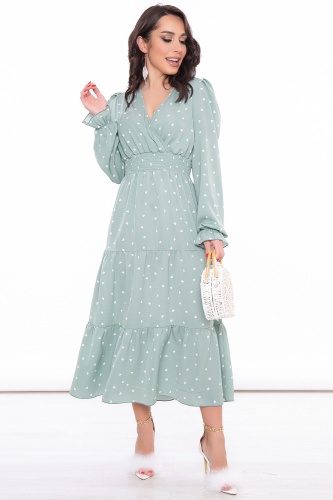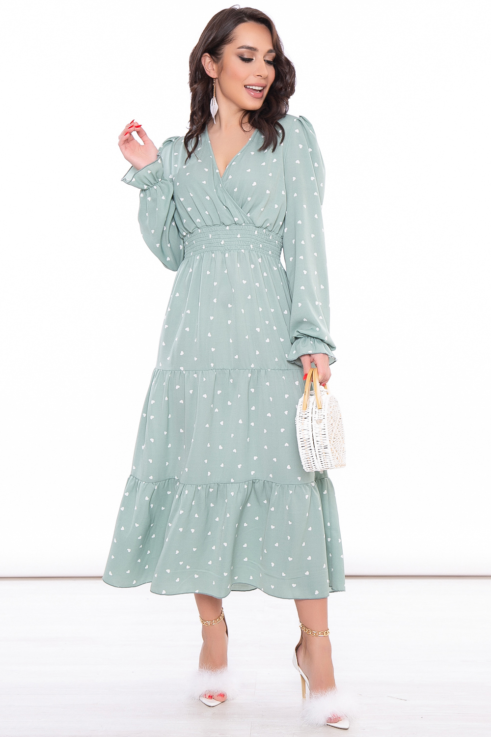 Эффектное и удобное платье, которое подойдет для любого случая. Талия на резинке, длина юбки каскадно украшена красивыми, широкими волнами. Рукав длинный, внизу оформлен воланом. Горловина скроена по типу "Запах".