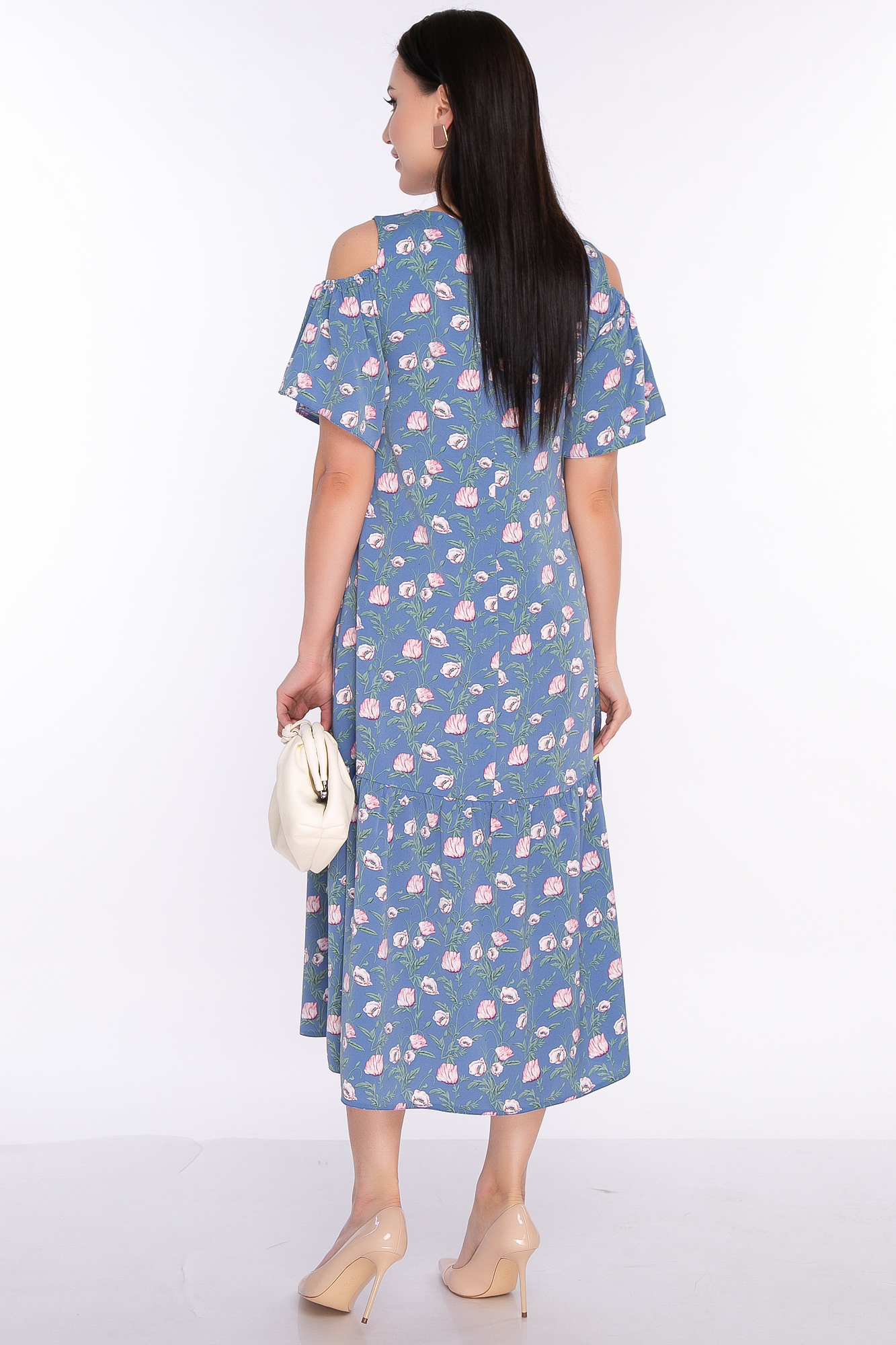 Элегантное платье свободного кроя прекрасно дополнит Вашу летнюю капсулу. Шикарная свободная юбка, с широким воланом добавляет романтичности образу. Женственный летящий короткий рукав с открытым плечом. В комплекте идёт поясок.