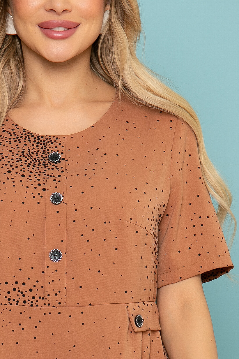 Платье в стиле "Бохо" прекрасно подойдет для создания летних повседневных образов! Платье свободного силуэта, удобной длины, рукав втачной, короткий. Талия отрезная. Платье без замков, без подкладки. Платье, из приятной к телу ткани, благодаря своему крою не стесняет движений и создаёт ощущение комфорта. Перед платья украшен пуговками.