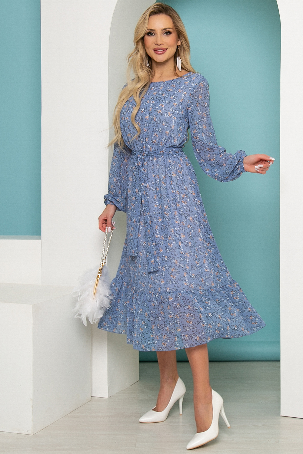 Шифоновое платье летящего роя с нежным цветочным принтом прекрасно подойдет для создания повседневных образов в весенне-лений период. Весной можно надеть с пальто или тренчем, а летом, оно прекрасно будет смотреться само по себе в сочетании с босоножками или туфлями-лодочками. Платье на подкладке, рукав втачной, длинный, на резинке. Мягкий округлый вырез горловины, талия на резинке, по низу платья широкий волан. В комплекте пояс из основной ткани.