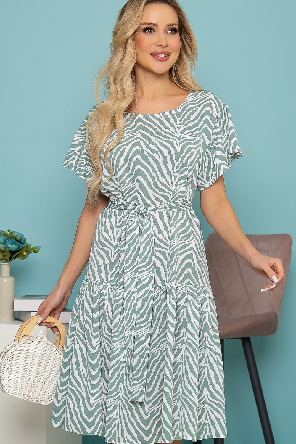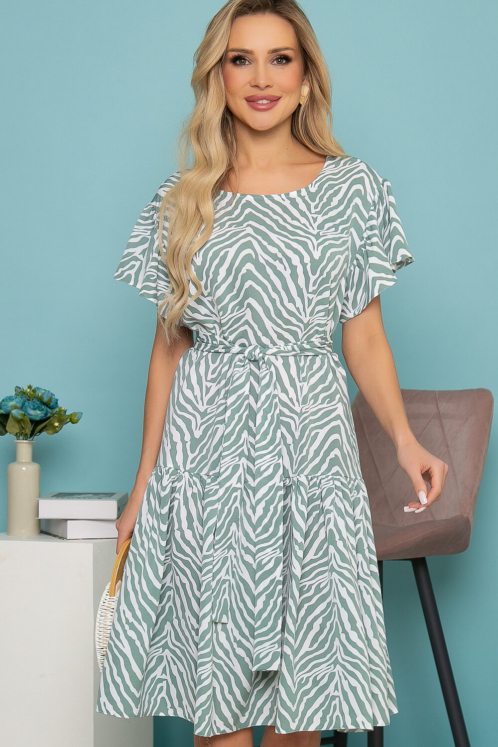 Летящее платье свободного кроя с невероятно-нежным принтом! Изумительно смотрится как с каблучком, так и с босоножками! Шикарная, летящая юбка, с широким воланом добавляет романтичности и воздушности образу. Женственный рукав-волан, вырез горловины округлый. В комплекте пояс из основной ткани.