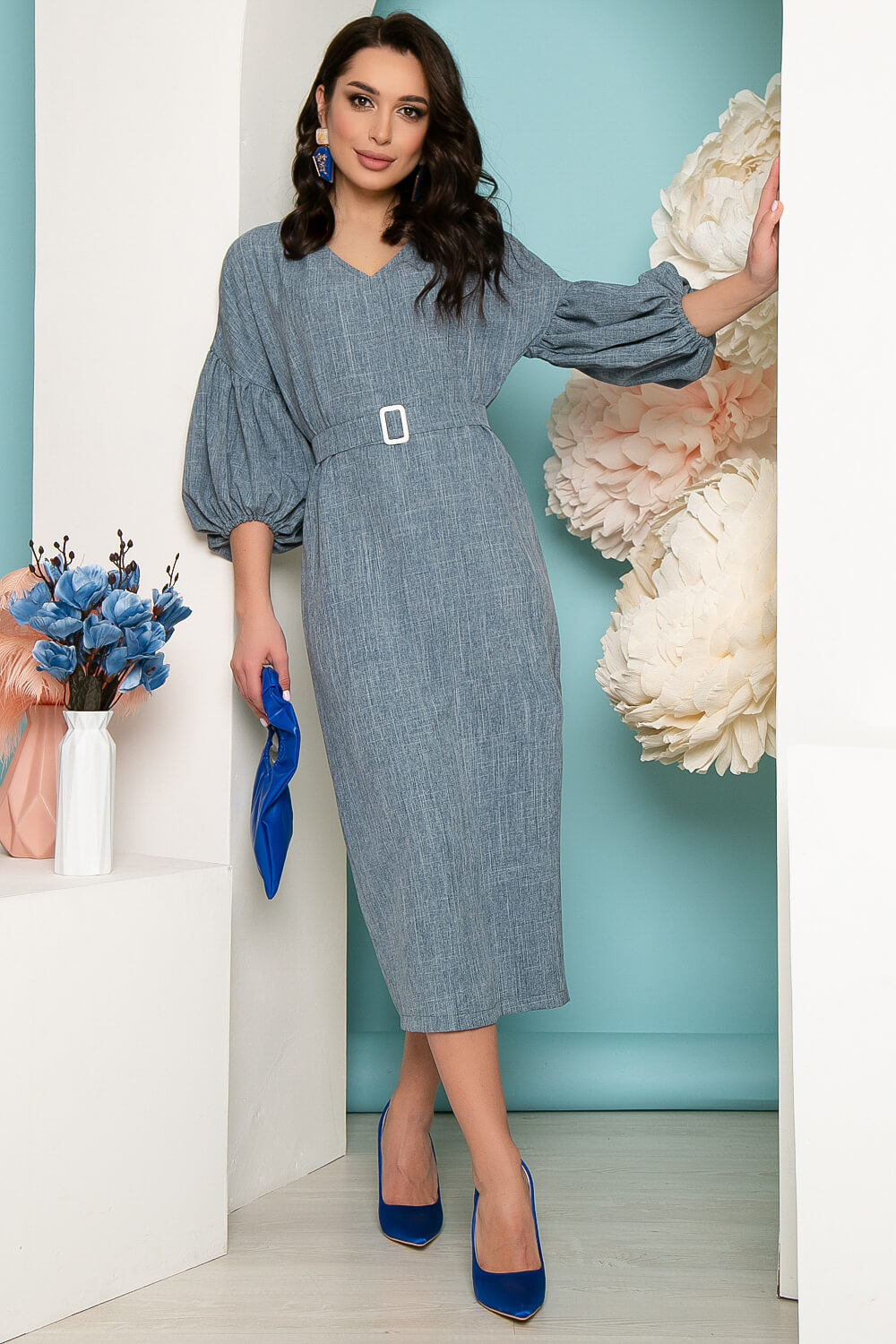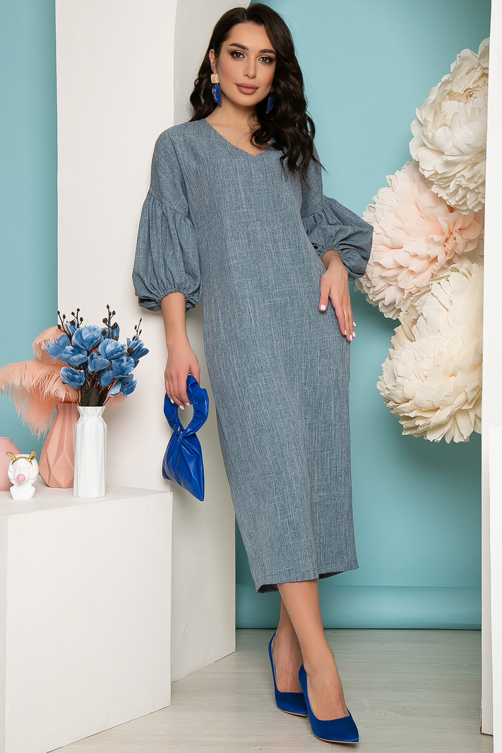 Платье, притягивающее взгляды и завораживающее, словно магия! Платье прямого кроя с акцентными рукавами. Плечевой шов спущен, низ рукава украшает буф, длина - три четверти. V-образный вырез горловины, сзади на юбке разрез. Платье из льняной ткани без замков и без подкладки.